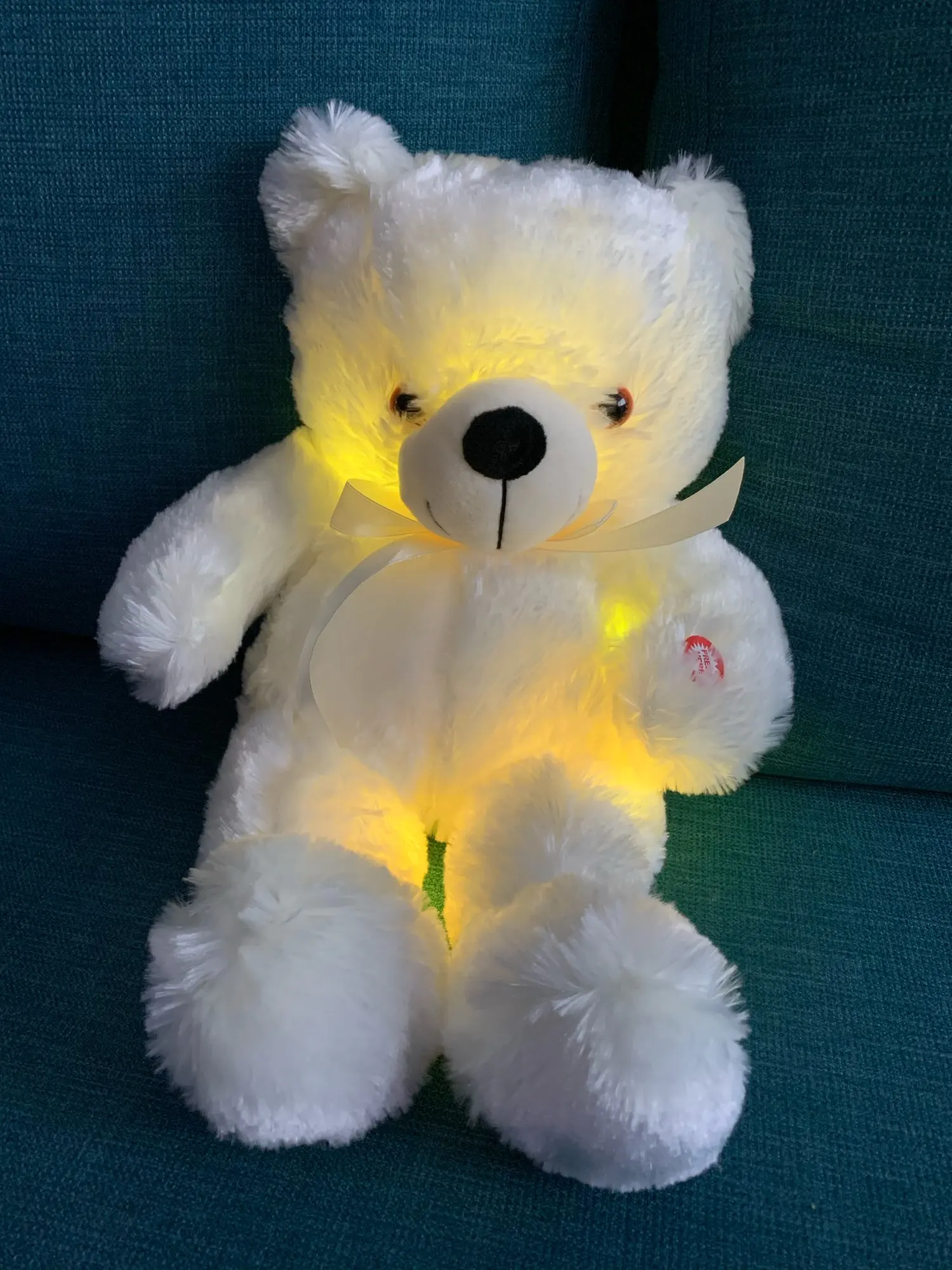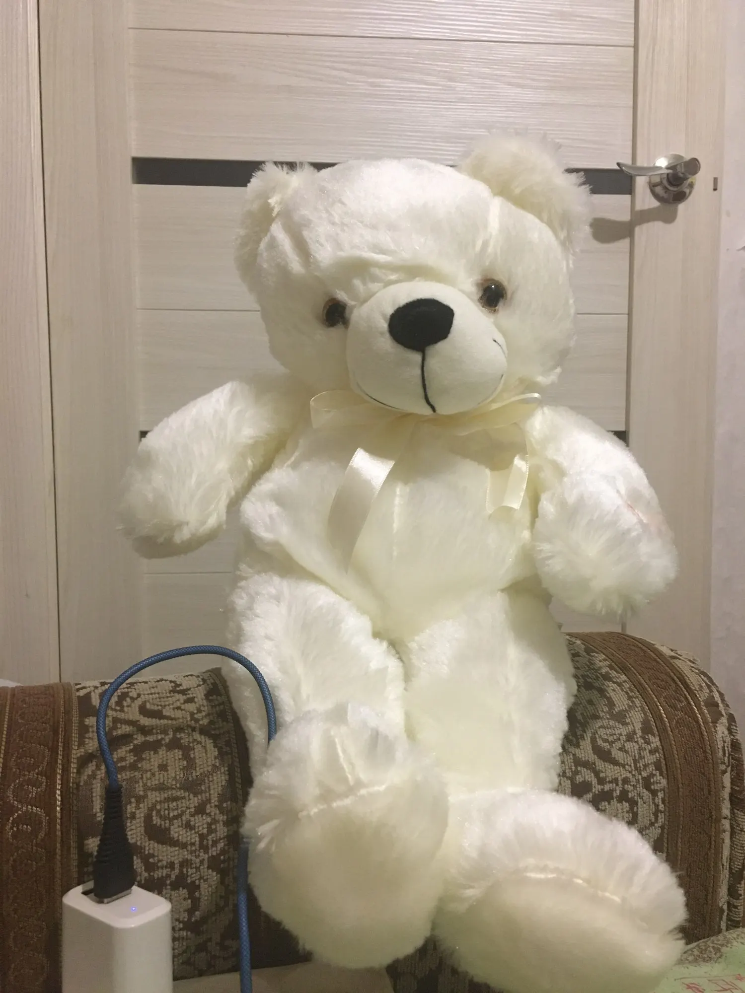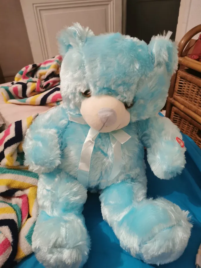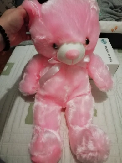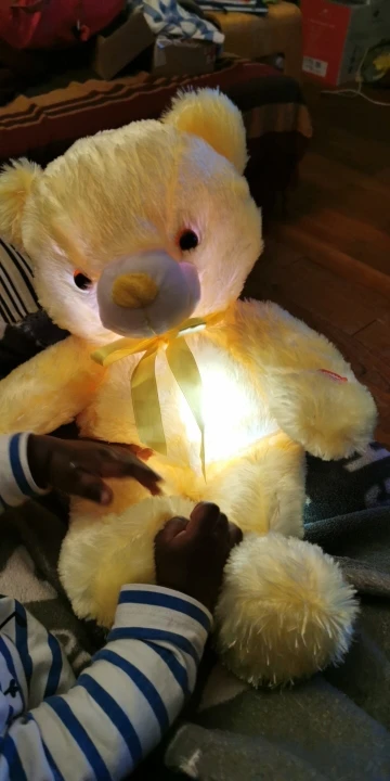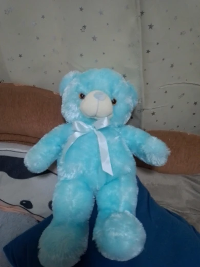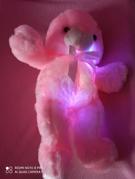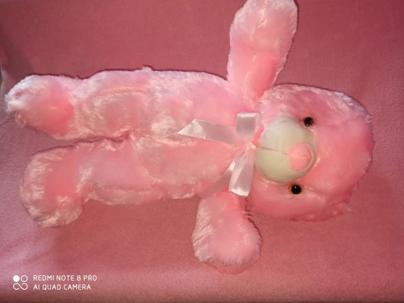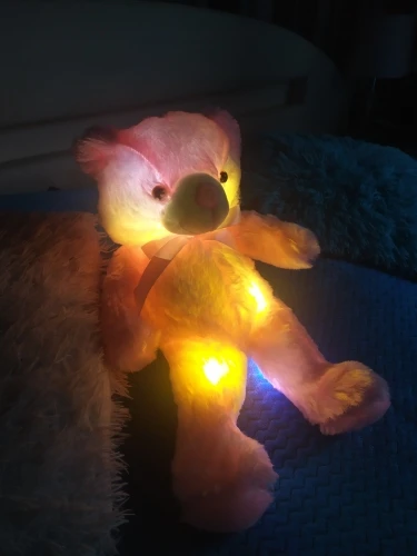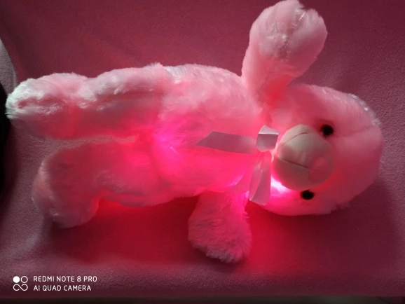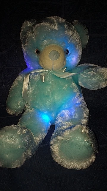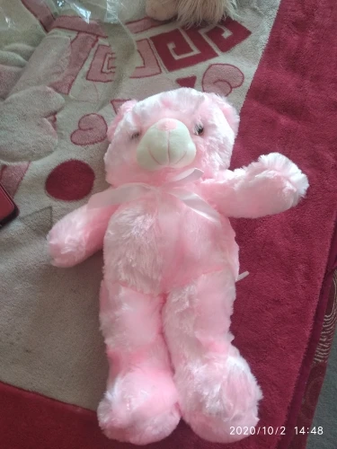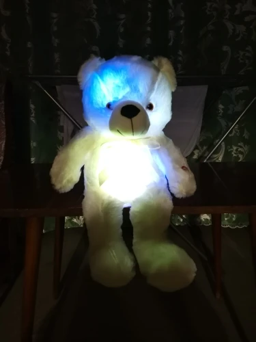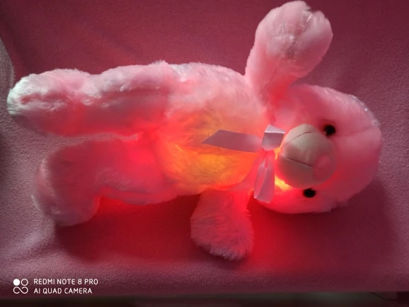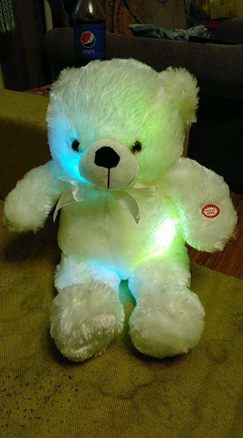 Мишка пришёл быстро, отслеживался, мягкий и пушистый, горит разными цветами, очень понравился!!! Продавцу спасибо за быструю отправку и доставку!!!