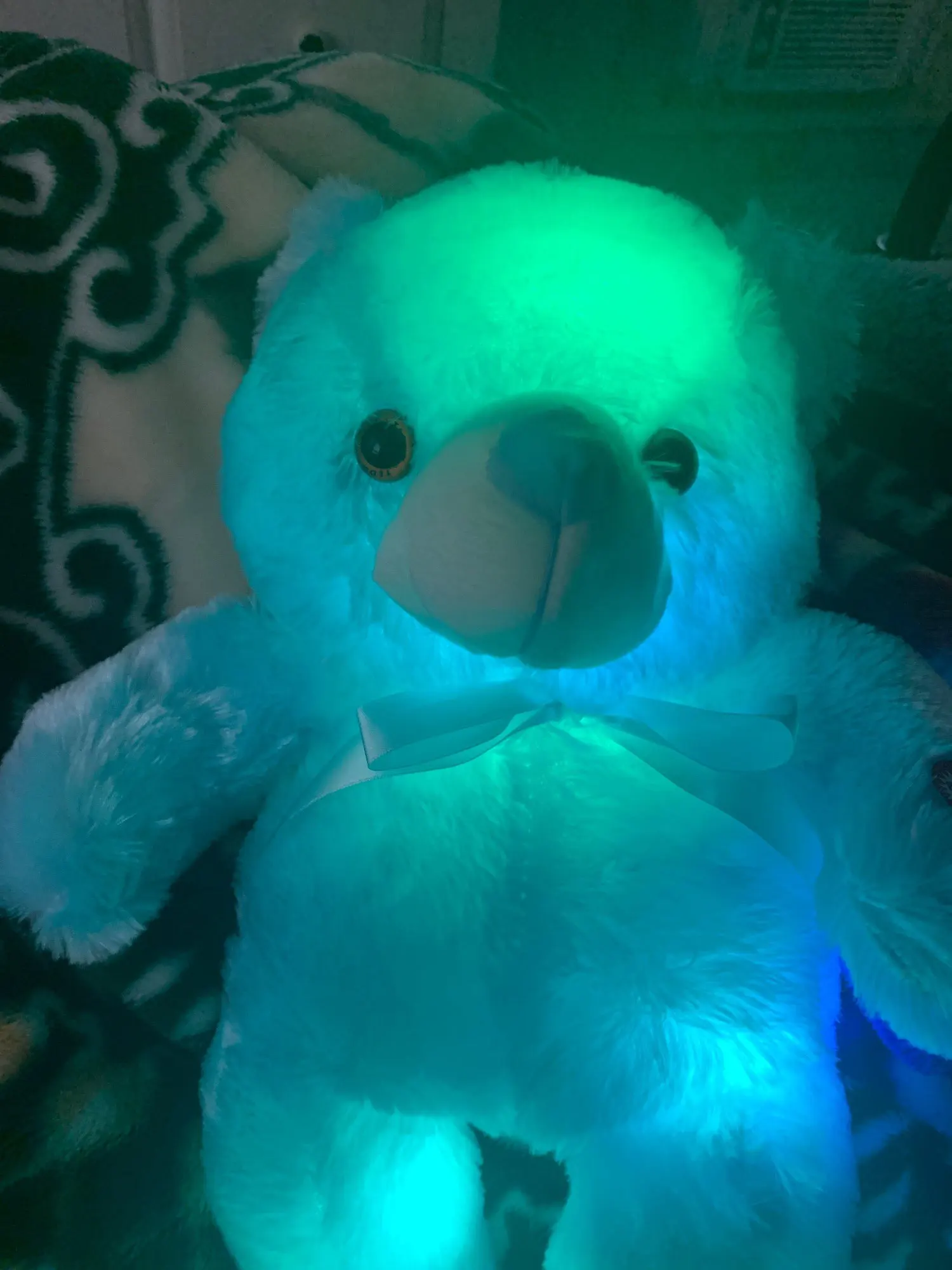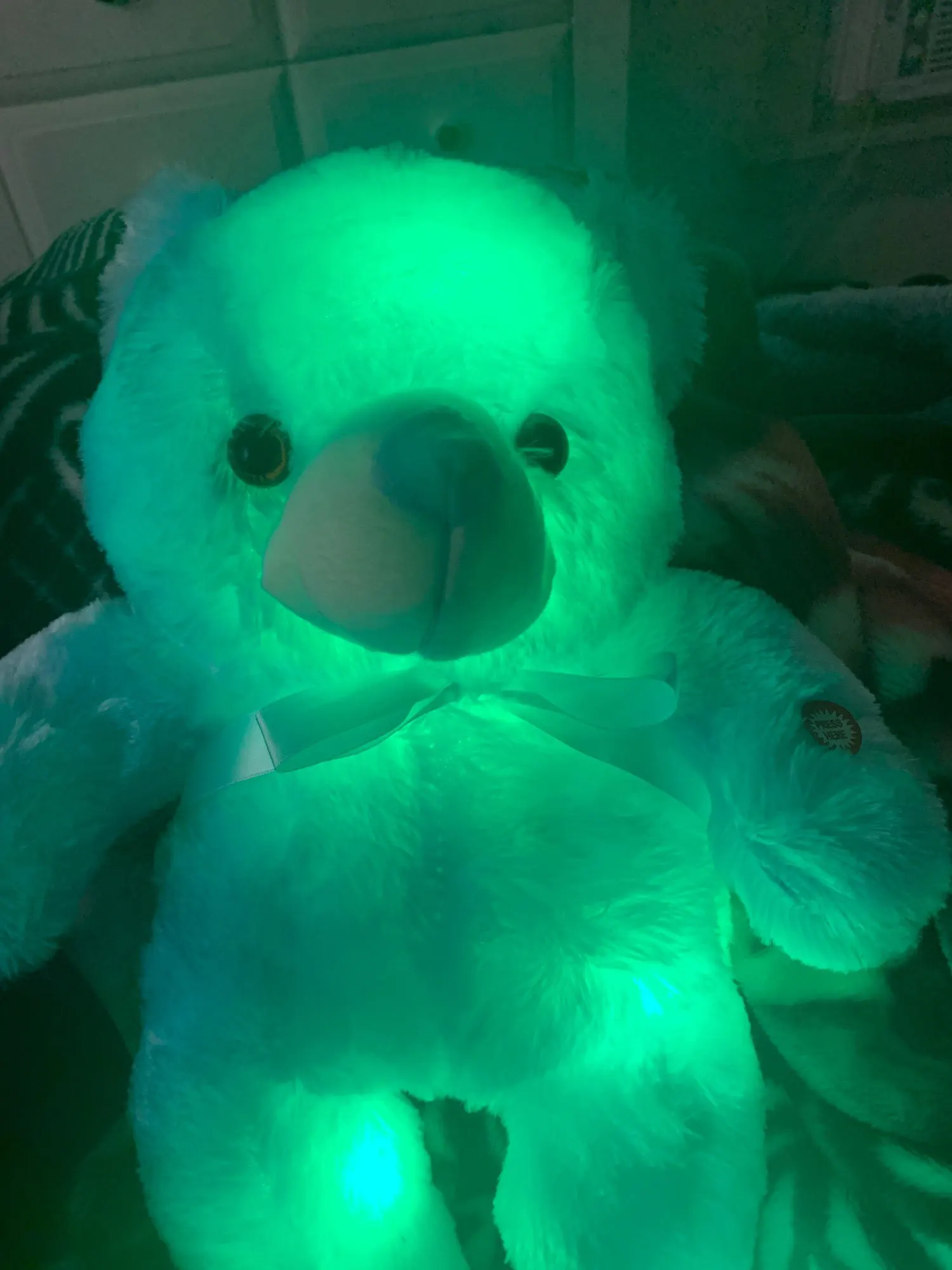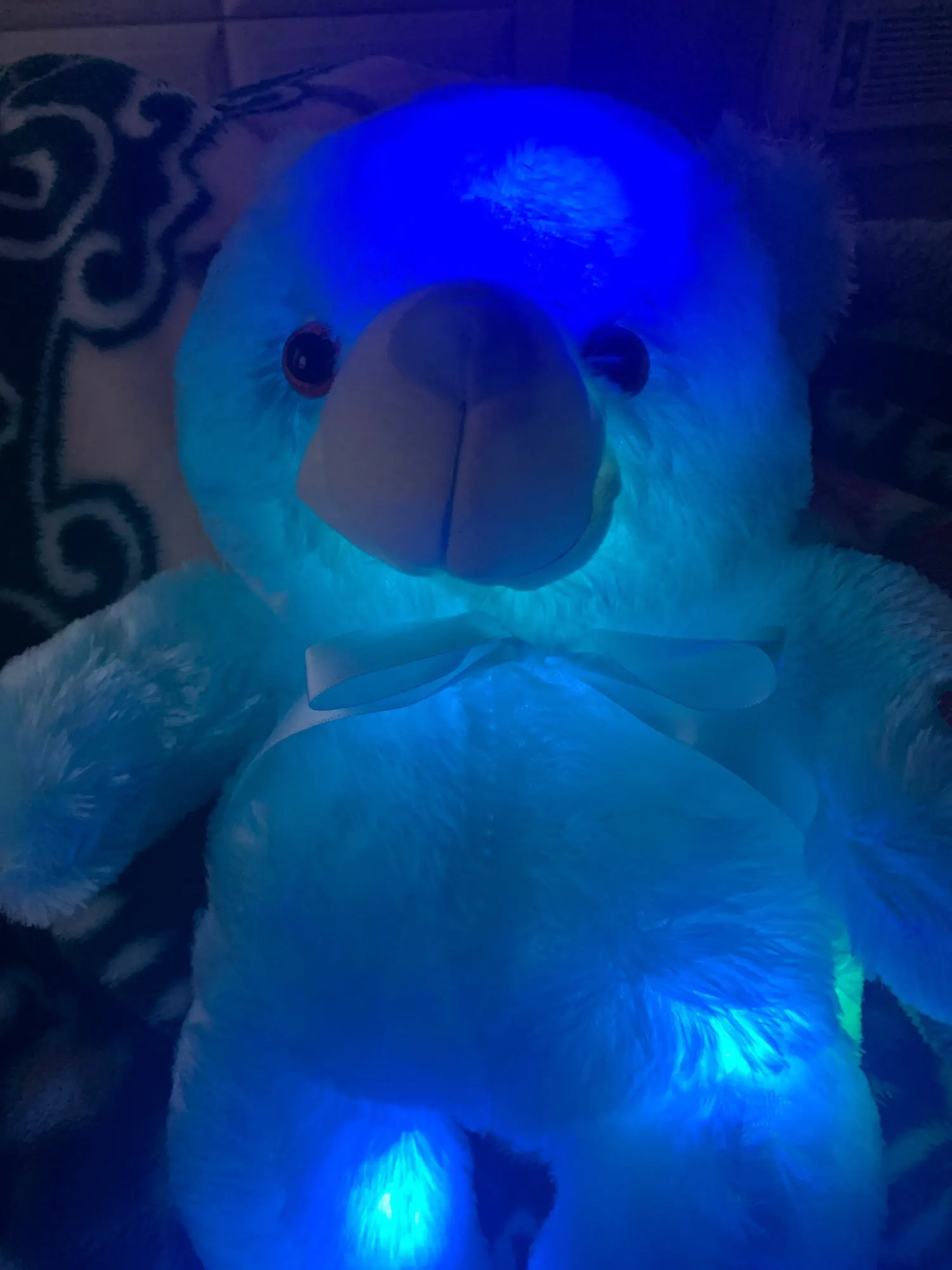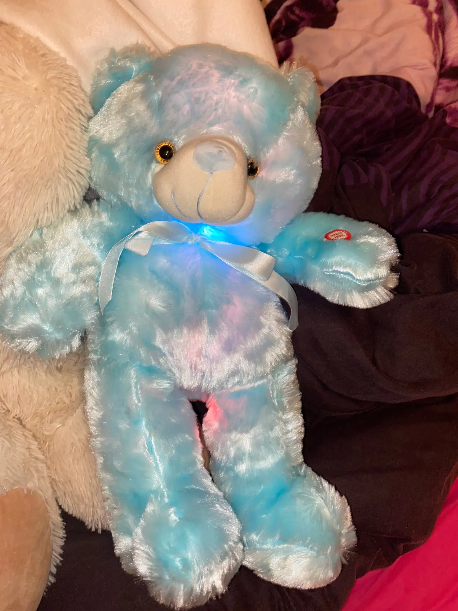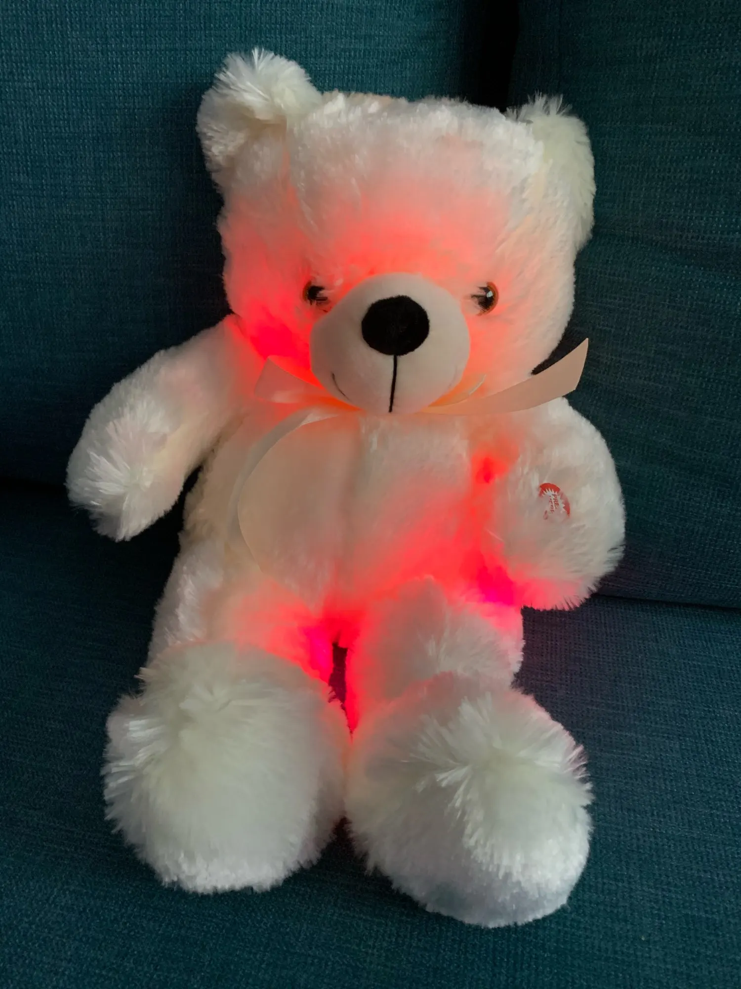 Мишка пришёл быстро, отслеживался, мягкий и пушистый, горит разными цветами, очень понравился!!! Продавцу спасибо за быструю отправку и доставку!!!