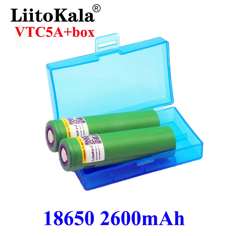 Литиевая аккумуляторная батарея LiitoKala, 3,6 В, 18650 в, 2600 мА ч, US18650VTC5A 30 А, разрядка для фонарика, игрушек + коробка 18650