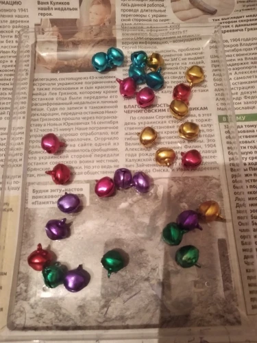 колокольчики хорошие, звенят не громко. не считала их, вроде прошло столько, сколько и должно быть, ждала очень долго. хотела сделать украшения на ёлку. :) к тому времени пока они пришли, мы ёлку убрали. рекомендую, данные колокольчики :)