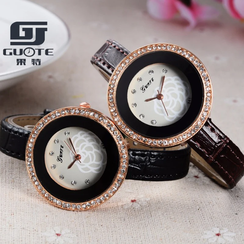 GUOTEBrand, винтажные женские часы, кожаный ремешок, Дамское Платье, узкий ремешок, часы для женщин, relogio masculino, часы со стразами