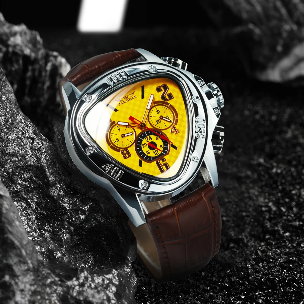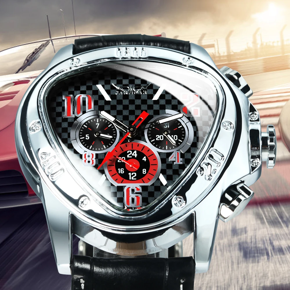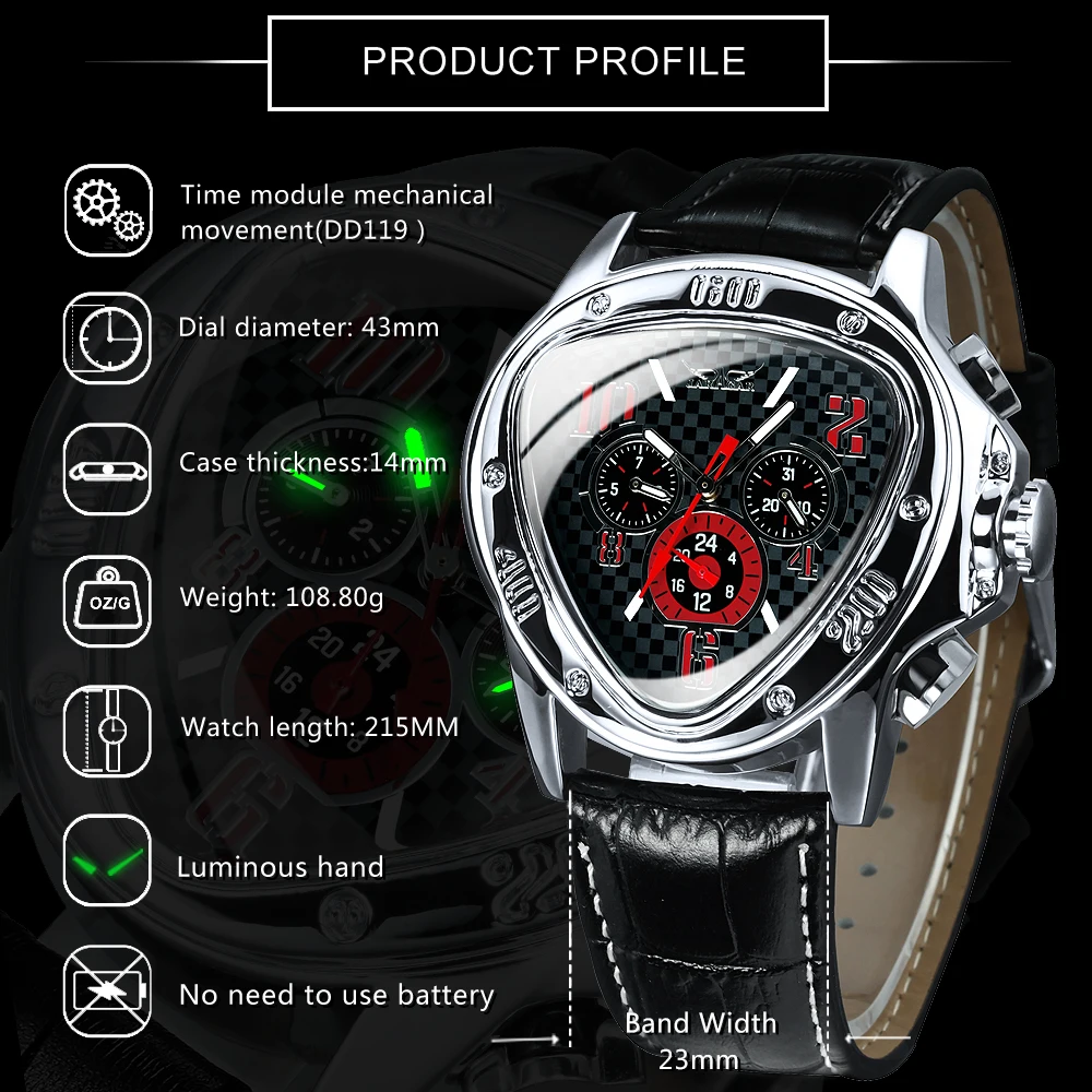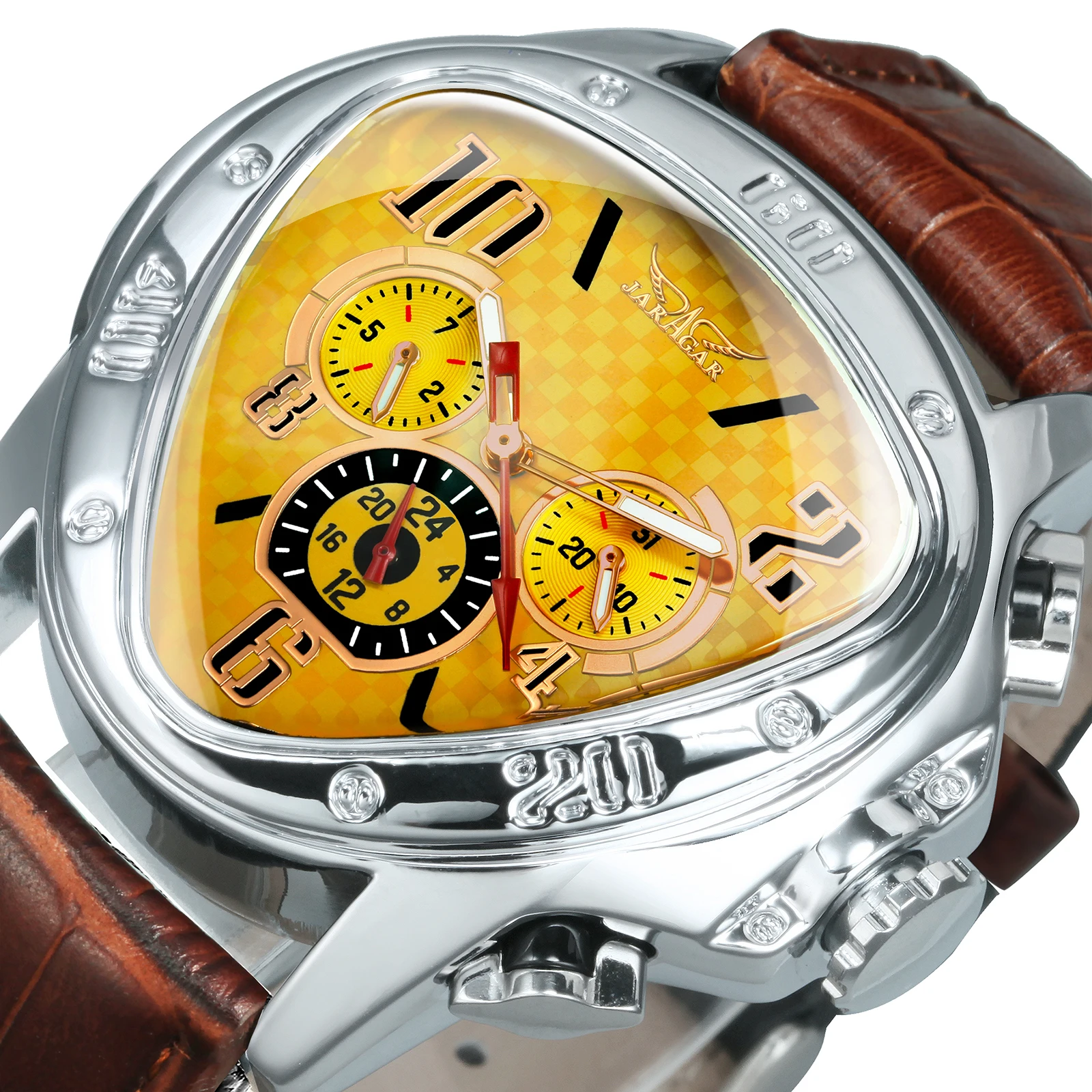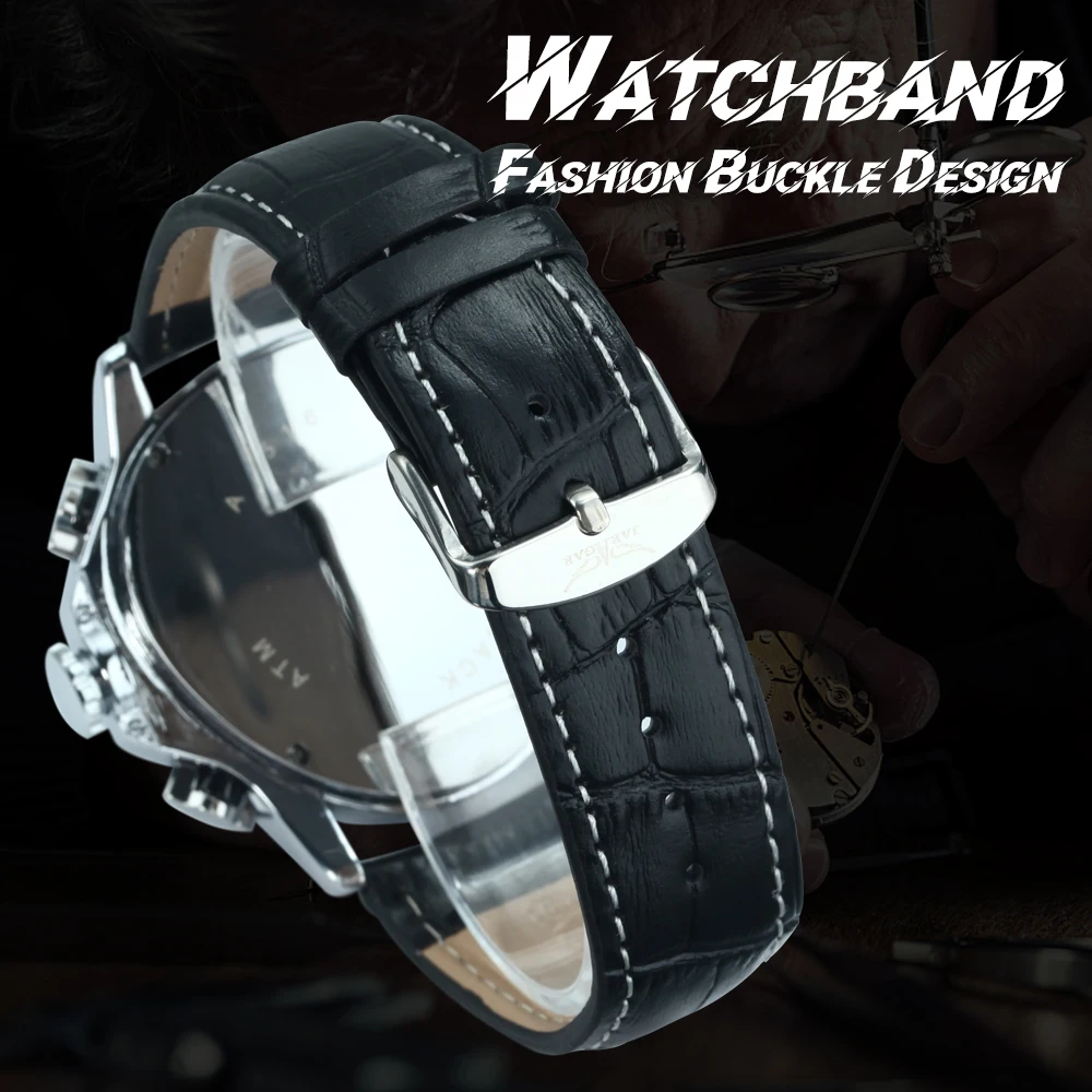 Мужские часы JARAGARБренд: JARAGARСтиль: Модный, Повседневный, деловой, роскошный, спортивныйОсновная особенность:1. Часы креативного дизайна, повседневный спортивный стиль2. Часы с кожаным ремешком в духе новых модных тенденций.3. Гарантия на 12 месяцевХарактеристики:-Диаметр циферблата: 43 мм-Чехол Толщина: 14 мм-Длина часов: 215 мм-Ширина ремешка: 23 мм-Вес часов: 87 г-Механизм: автоматический самоветер-механический (без батареи)-Материал зеркала: Hardlex-Тип застежки: ПряжкаСветящиеся стрелки-Водонепроницаемость: Водонепроницаемость (не для плавания или душа)Подходящий повод:Идеально подходит для всех случаев! $! Мероприятия: вечерние, юбилейные, деловые, повседневные, уличные спортивные, домашние или повседневныеПосылка включает в себя:Часы-1 шт. (подарочные коробки на выбор)