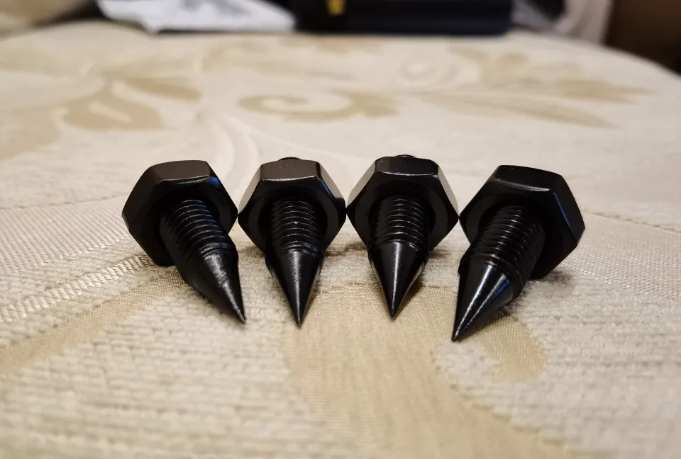 Шипы отличные. Брал первый раз для тумбы под аппаратуру, пока тумба изготавливалась - один потерял. Попросил продавца, он согласился продать один. В результате за стоимость одного отправил комплект из 4-х штук. Доставка очень быстрая, продавец отзывчивый, упаковано в большой слой пупырки, как будто что-то хрупкое. Всем советую данный магазин !!!!