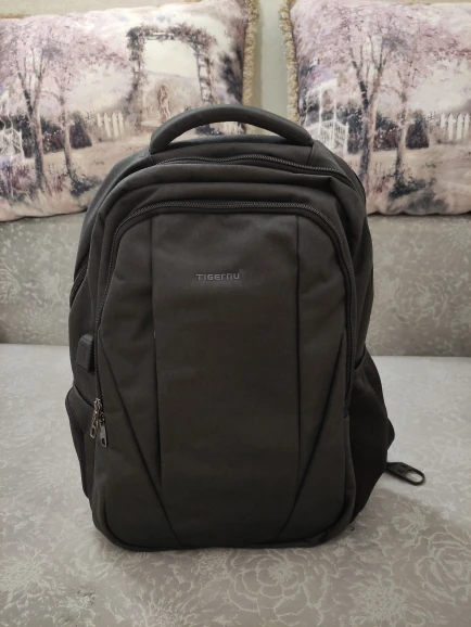 Рюкзак отличный. Много карманов, из них два скрытых. Сшит качественно, ткань плотная, водоотталкивающая. Всё из указанного в описании на месте, включая замок и USB шнур для подключения пауэр-банка. Мой ноутбук Lenovo 15,6'' (округленные размеры: 36×24,5×2 см) прекрасно в него поместился, см. фото. Купила 28.11 со всеми скидками за 1998 руб. С продавцом не общалась. Заказ был отправлен быстро на 2-й день. В Москву дошел очень быстро, за 7 дней. Рекомендую товар и продавца!