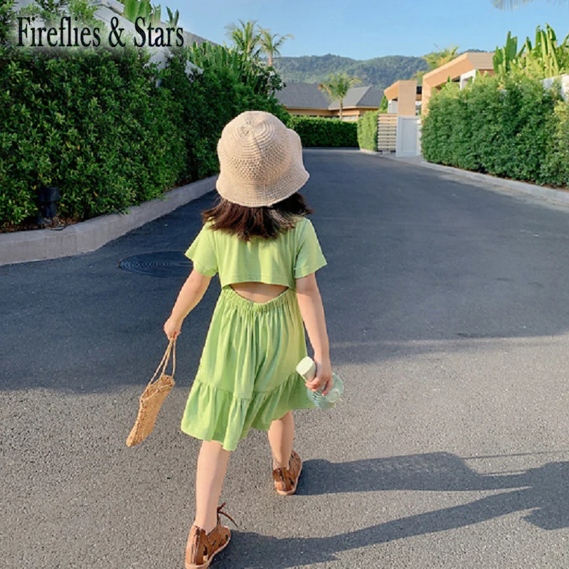 Название:Летняя футболка для девочек; Платье для малышей; vestidos; Детская одежда; Новая Модная хлопковая блестящая одежда без рукавов с рюшами на спине для детей от 3 до 7 лет