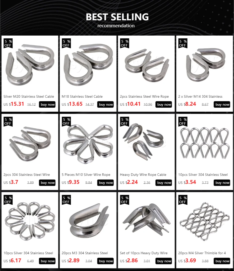 Примечание: цвет изделия может незначительно отличаться из-за фотографии и вашего собственного компьютера Характеристика:Изготовлен из нержавеющей стали 304 для максимальной коррозионной стойкости и долговечности.Предназначен для предотвращения дробления или перенапряжения троса на концевом конце, который используется для защиты глаз троса или слинга.Помогает удерживать кабель от скольжения вокруг глаз, что приводит к ослаблению кабеля.Идеально подходит для использования в морских и промышленных такелажах и канатах. Спецификация:Материал: нержавеющая сталь 304Цвет: серебристыйТип: европейский стильСтандартный размер: 3 ммРазмеры: 23x15 мм/0,91x0,59 "(Д х Ш х В)Вес: 46 г Посылка включает:20 x трос из нержавеющей стали