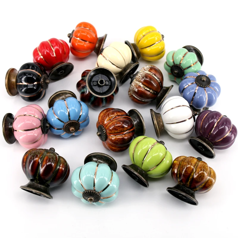 1 шт. керамические дверные ручки в форме тыквы, ручки для шкафа и ручки для мебели, ящика, кухонная ручка для шкафа