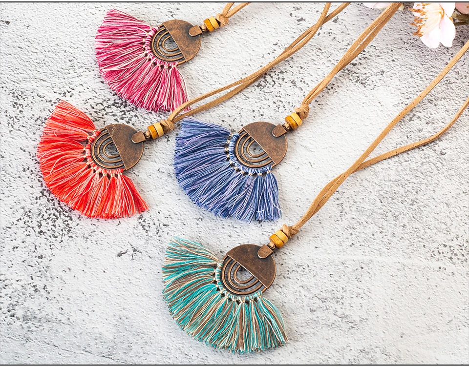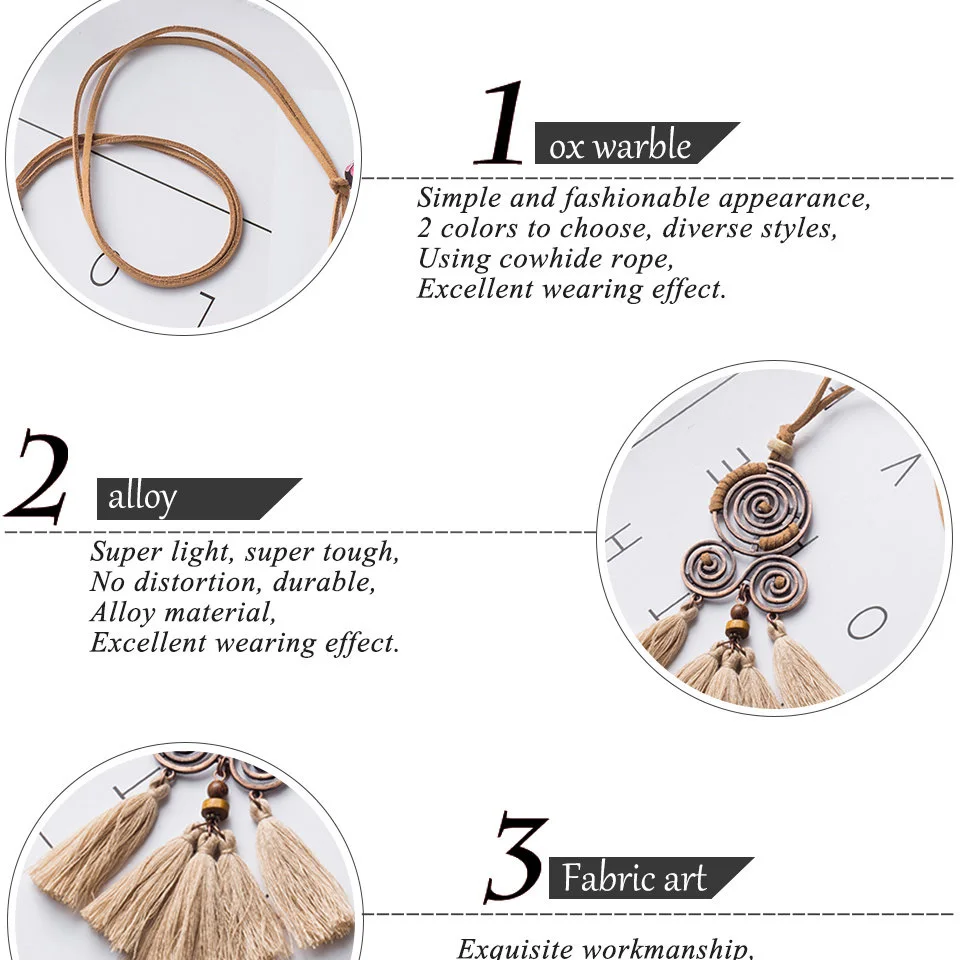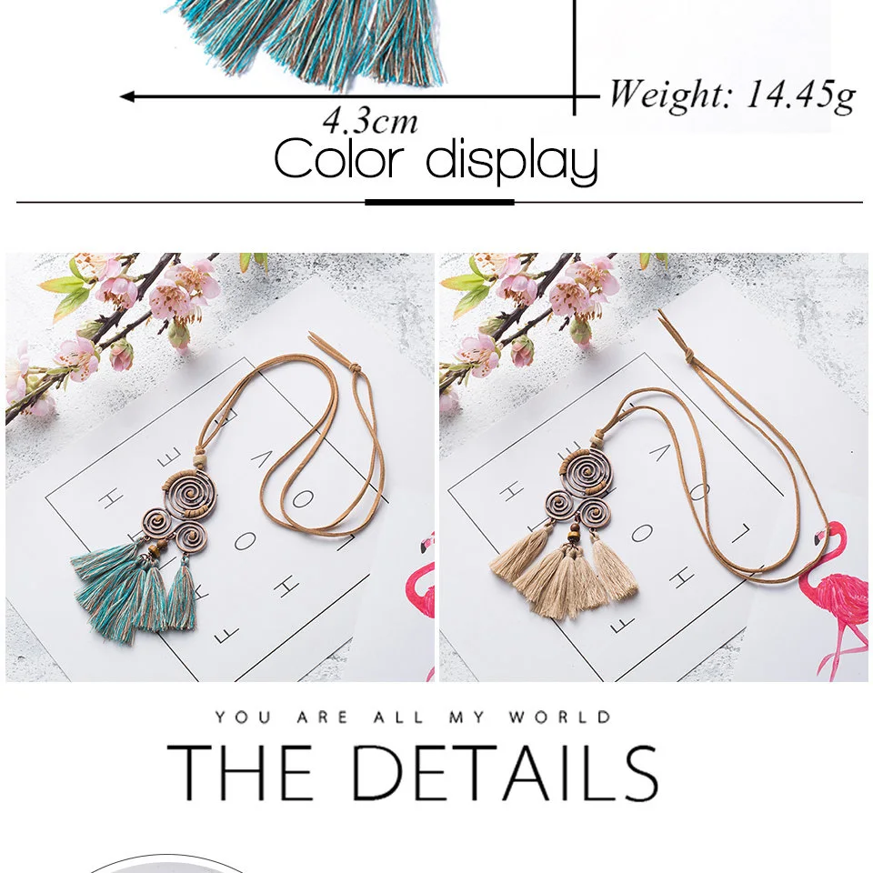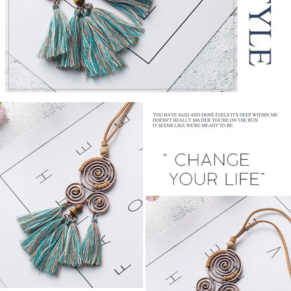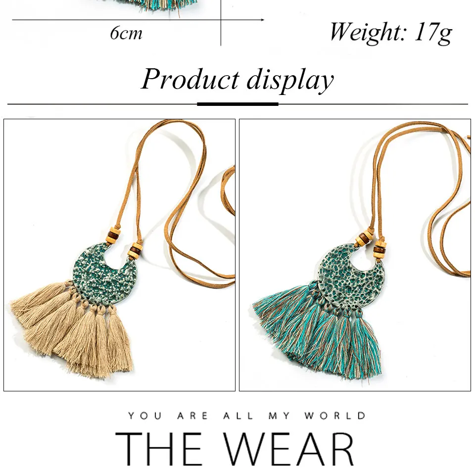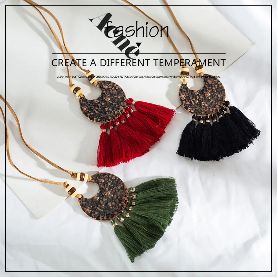 Женское очаровательное винтажное богемное этническое ожерелье-чокер с кисточками, Длинная кожаная веревочная цепочка для свитера, ювелирные изделия