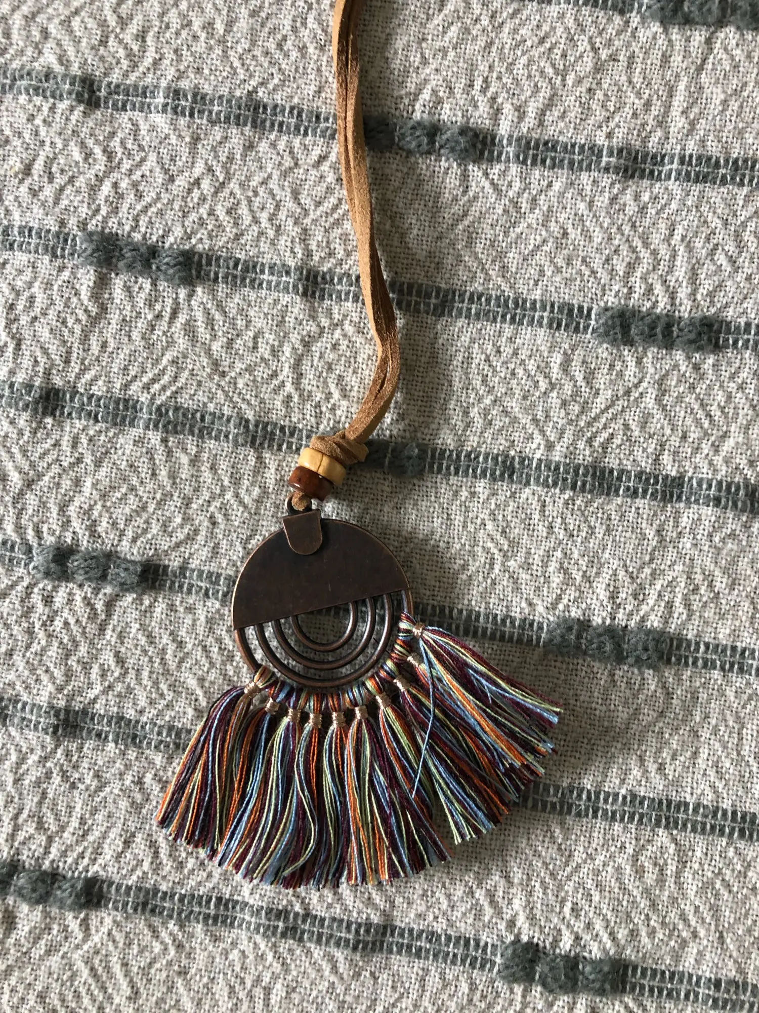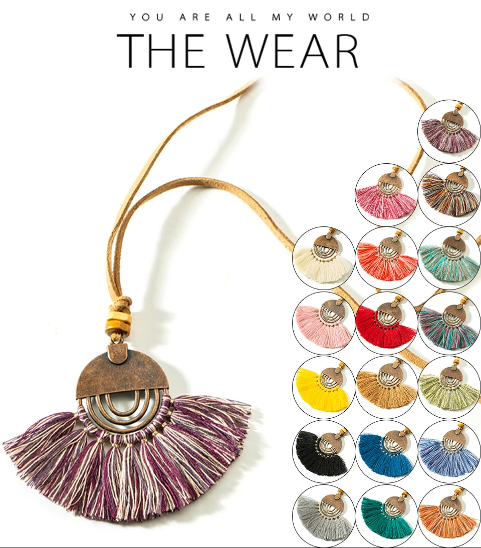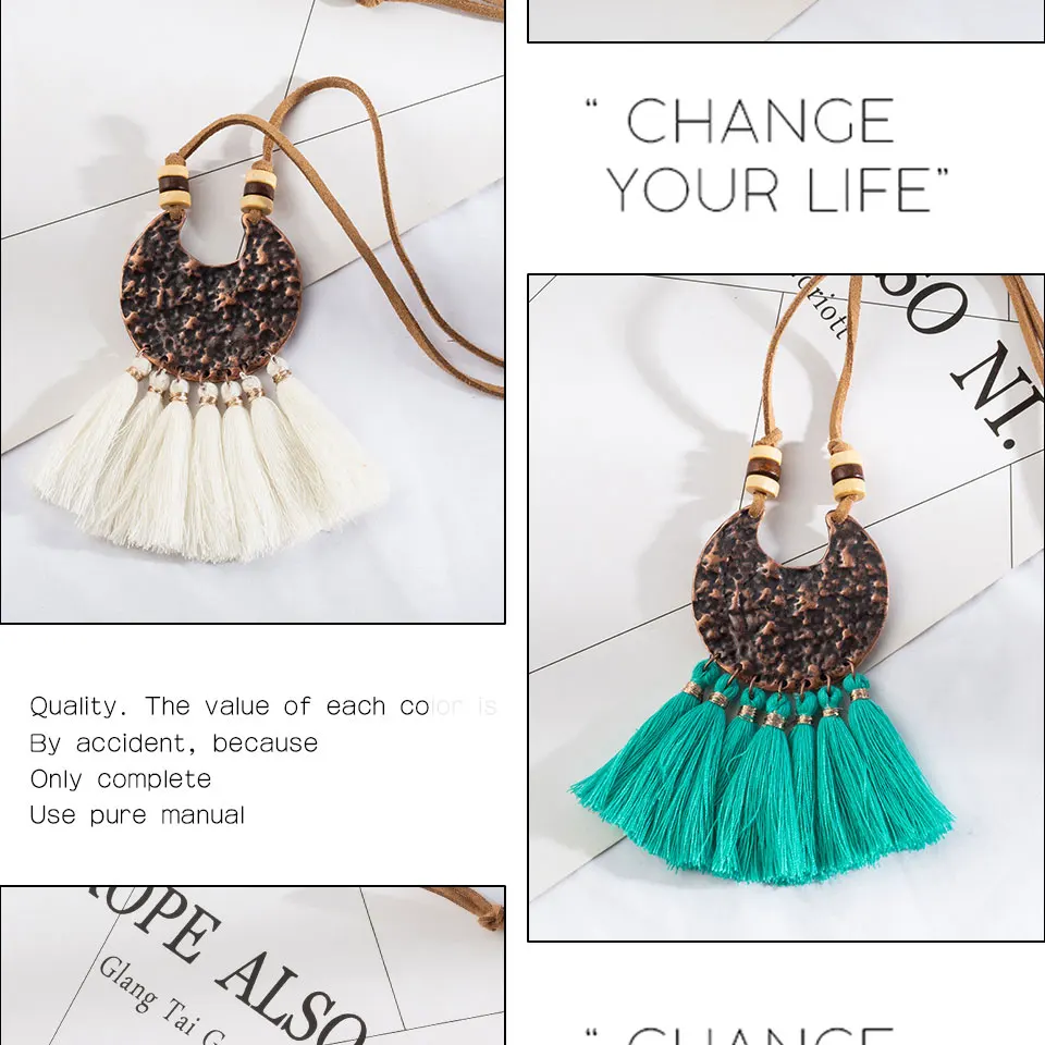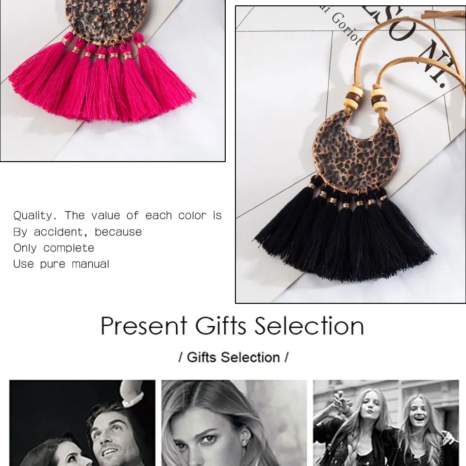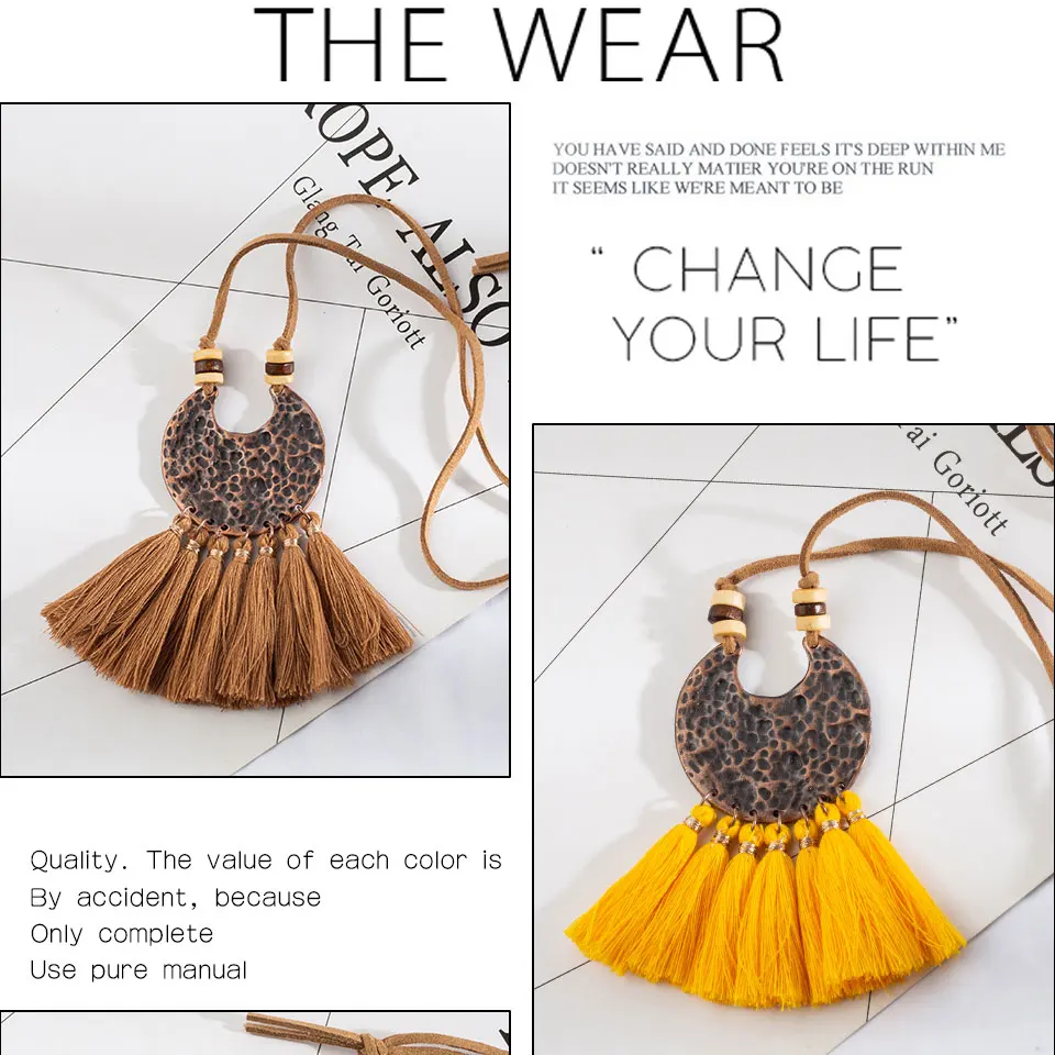 Женское очаровательное винтажное богемное этническое ожерелье-чокер с кисточками, Длинная кожаная веревочная цепочка для свитера, ювелирные изделия