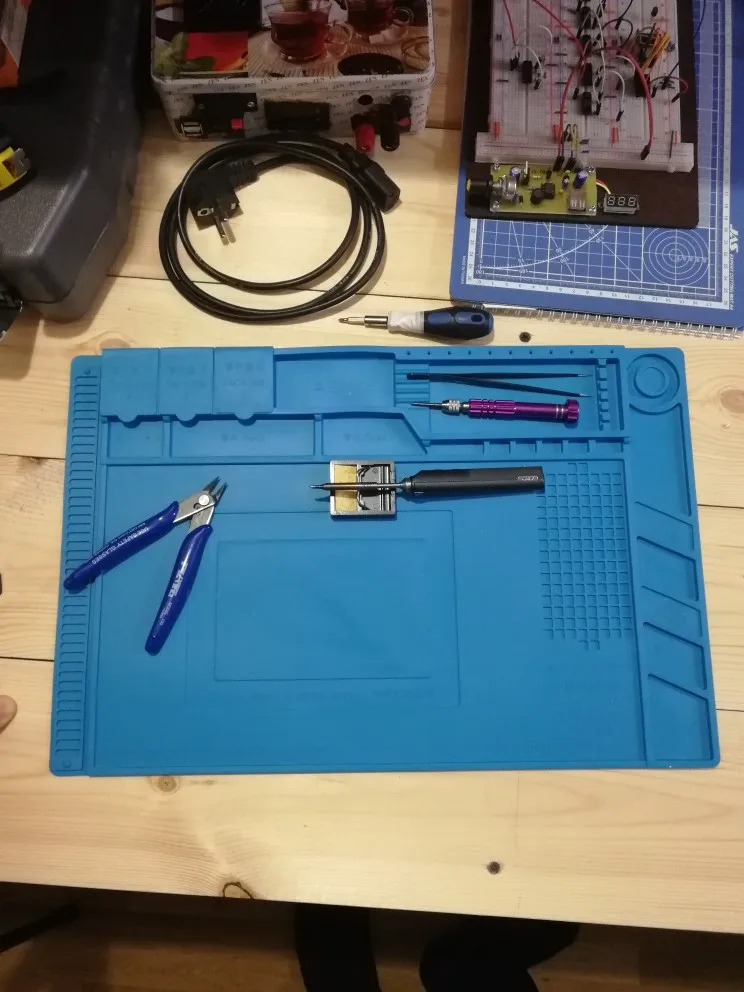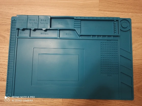 Классный силиконовый ковер для пайки и ремонта. На распродаже урвал за 690 рублей! Доставили курьером. Все чётко, заломов нет, аккуратно упакован. Магниты на месте, кармашки хорошо закрываются, всё как в описании. Доволен как слон, очень удобная и приятная вещица. Спасибо продавцу!