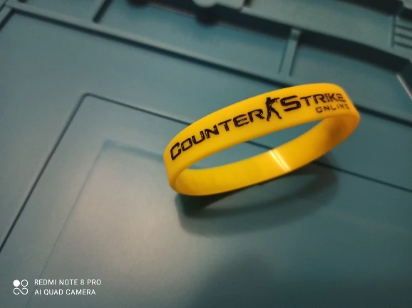 Пришло с курьером, в подарок был положен силиконовый браслетик Counter Strike желтого цвета. Еще не использовался, но сделано качественно. Парень был в восторге.