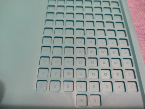 Силикон довольно толстый с точной геометрией изгибов и форм. Заусенцев не обнаружил. Есть рельефные обозначения секций и зон на китайском и английском языках. Три отсека с крышками часто самооткрываются - это недостаток, надо подумать как подправить. Пиобретал на осенних скидках за 610 рублей. Будем USпользовать!