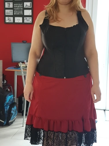 Очень хорошая юбка, качество по предварительной записи. Он жидкий и ткань немного скользкая. Я взял l в XXL, и я делаю 44/46, он немного большой в талии, но он тоже не опускается, поэтому я даже не колеблясь, чтобы возобновить его. Честно говоря, я очень доволен рендерингом по цене