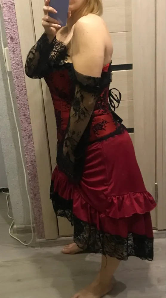 Шло больше месяца в МО. Цвет не соответствует - синий ближе к черному. Чистая синтетика, хорошо тянется. Юбка на молнии. С размером не угадала, сказалась привычка брать с запасом на али. На об 100 и от 72 очень велико, "на вырост". Смотрите размер по таблице продавца. А так красиво, конечно. Рекомендую.
