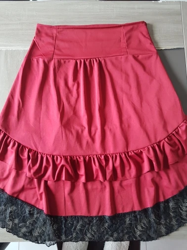 powiem tak. spódnica super. materiał może i taki sobie, ale nawet z bliska tego nie widać. bardzo rozciągliwy. moje wymiary pas 80, biodra 95. zdecydowanie za duża. nie chciałam żeby była opięta, ale spada mi i trzyma się tylko na biodrach. kupię jeszcze raz, tym razem rozmiar M
