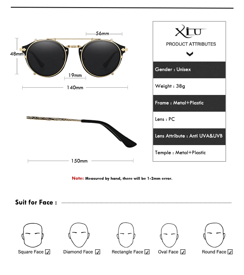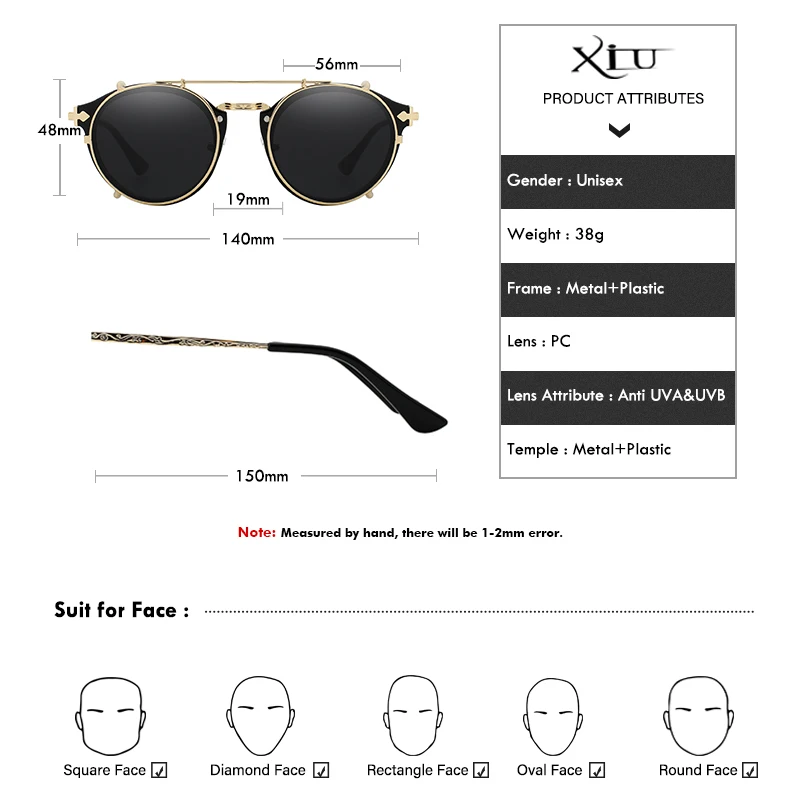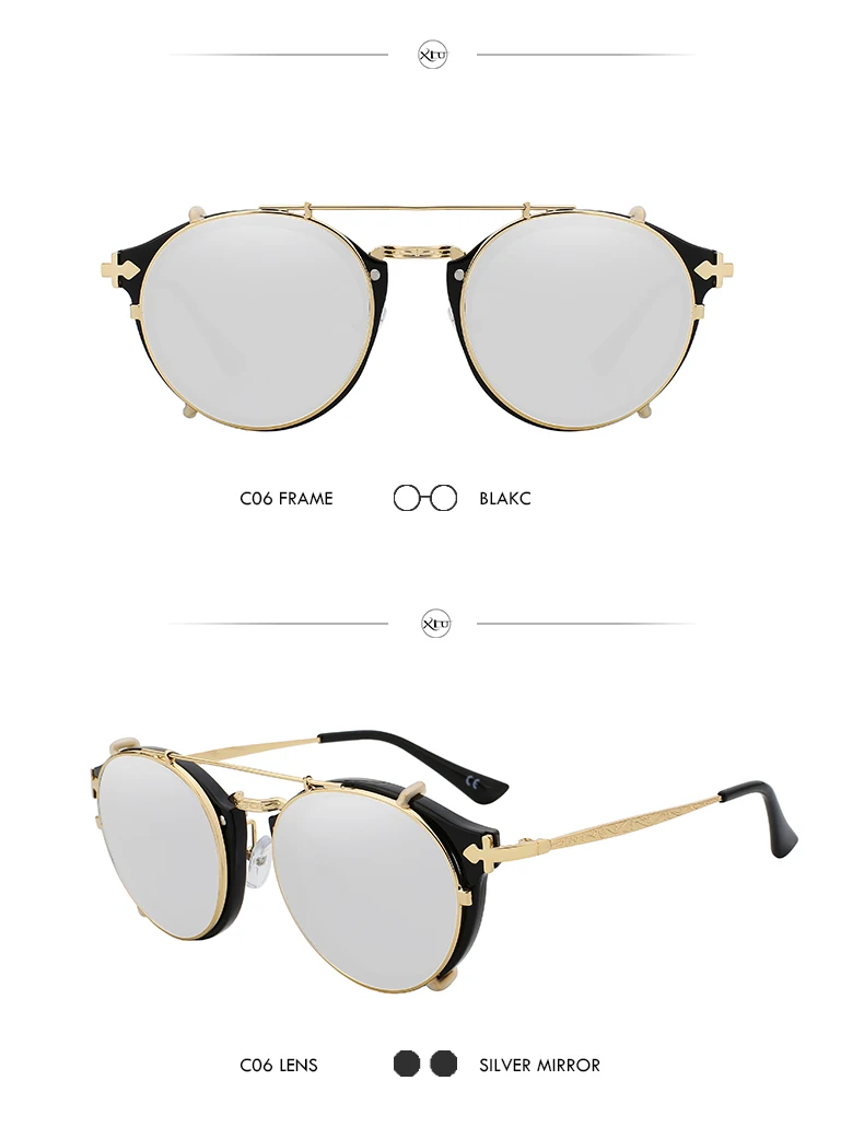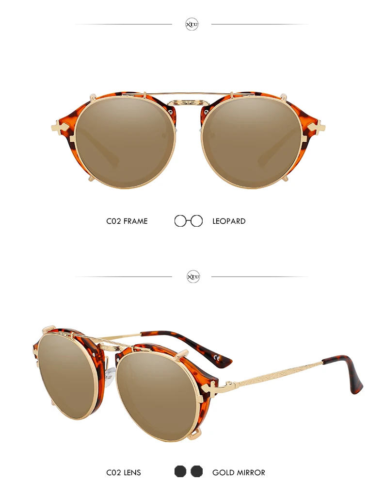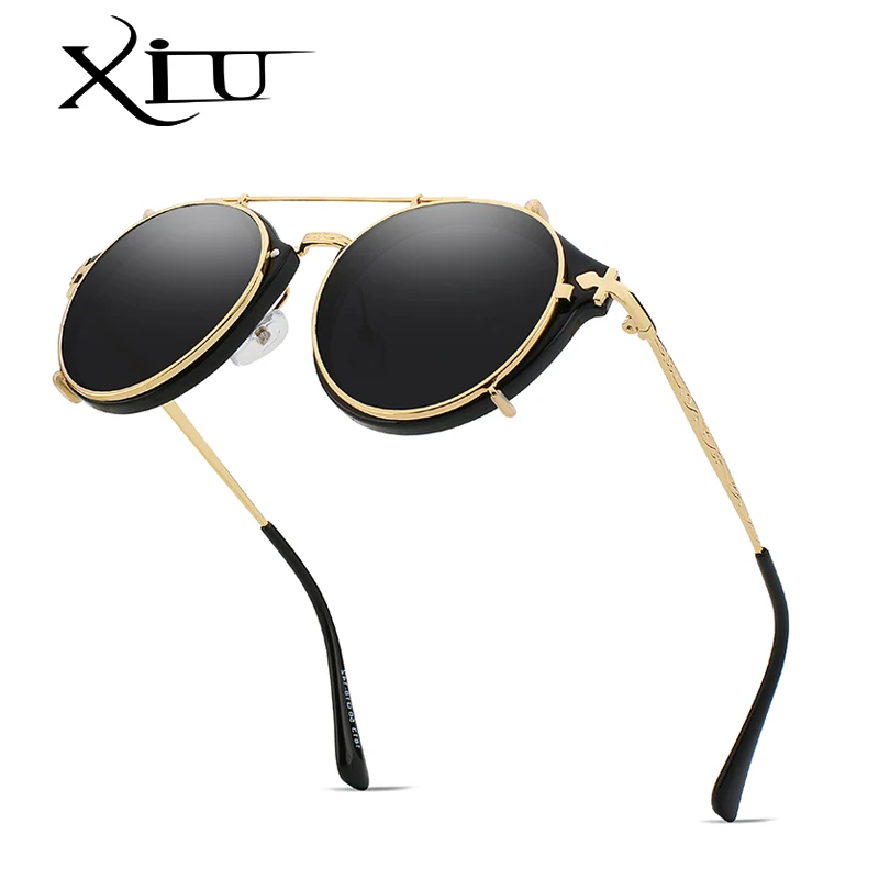 Солнцезащитные очки XIU с клипсой для мужчин и женщин, Модные Винтажные солнечные аксессуары в стиле стимпанк, ретро, UV400