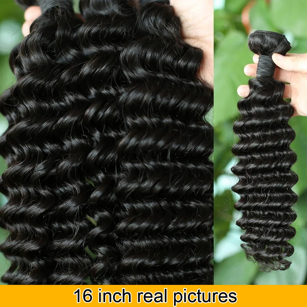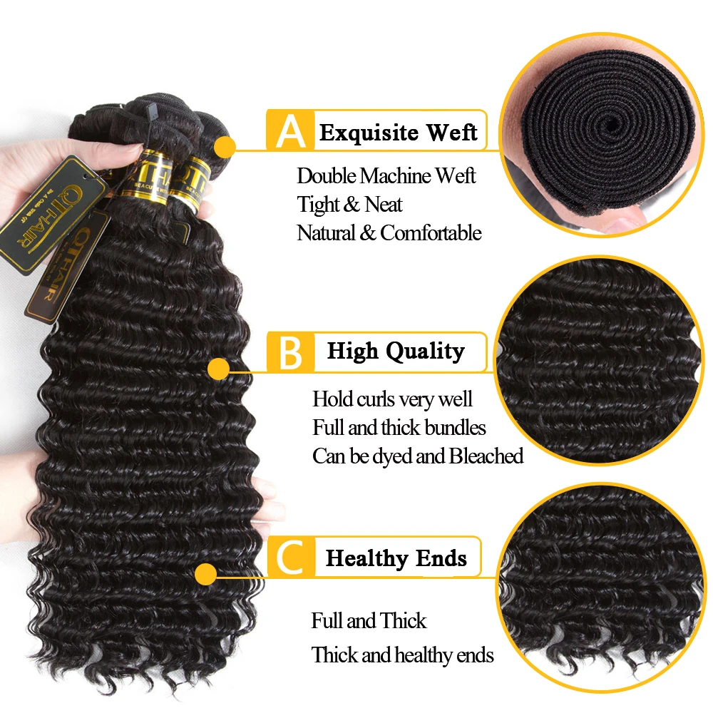 Глубокая волна человеческие волосы 3 пряди с кружевом фронтальной у...