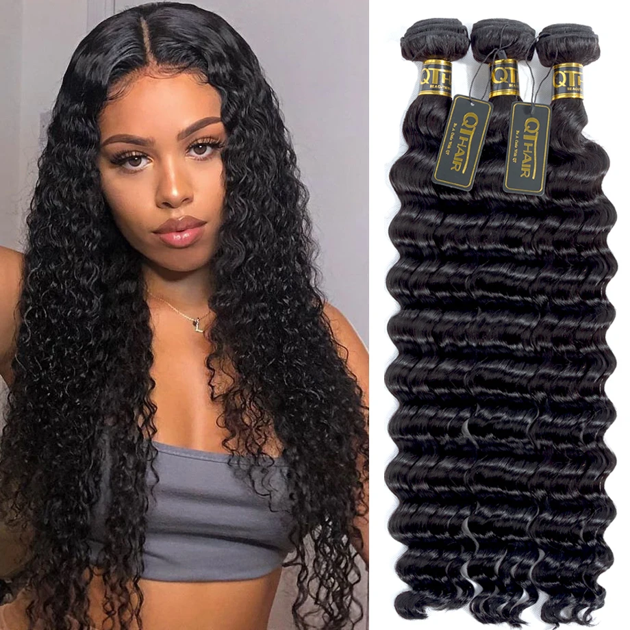 QT перуанские волосы с глубокой волной, пряди 3 шт.лот, Реми, наращ...