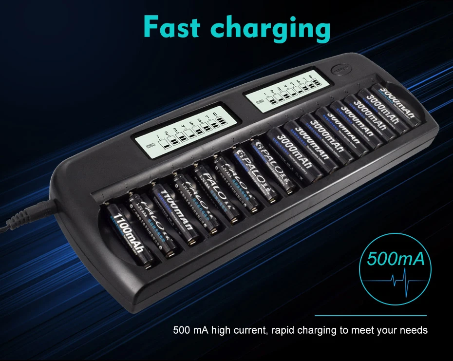 Зарядное устройство PALO для аккумуляторов AA, 12 ячеек, быстрая за...
