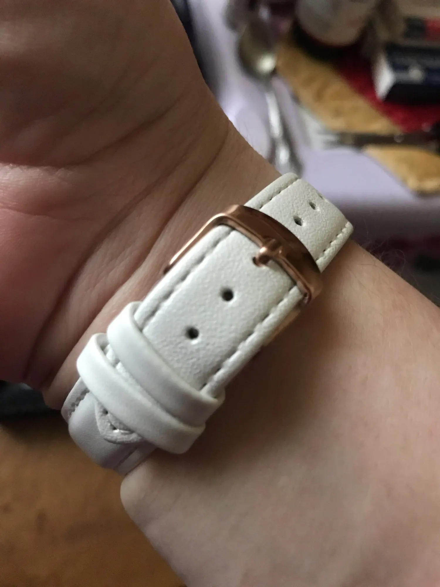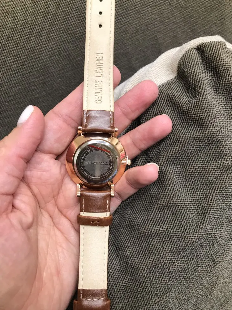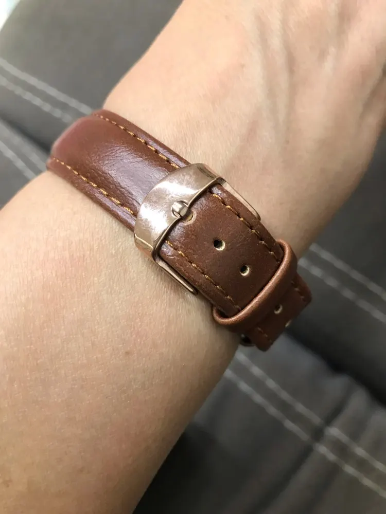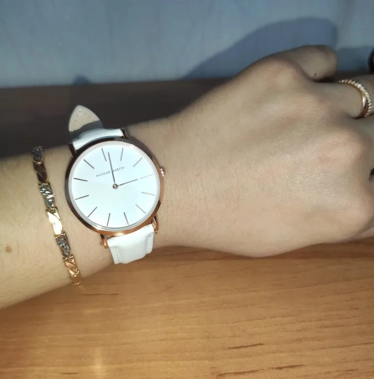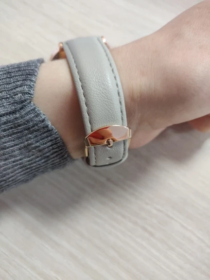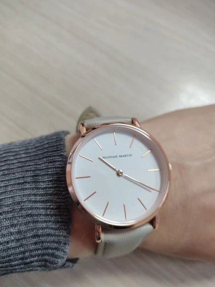 Часы хорошего качества, вся фурнитура идеальна, стекло без царапин и вкраплений, выглядят очень минималистично и стильно. Одно НО - ремешок дубовый, и его нужно основательно разнашивать, чтобы он стал мягче и принял форму руки, потому что гнется он с большим трудом. Натерла кожу на запястье, пока занималась этим странным делом :)