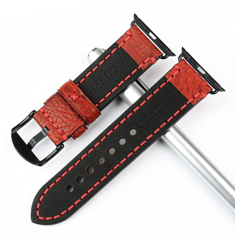 Ремешок для часов MAIKES кожаный, модный красный браслет для Apple ...