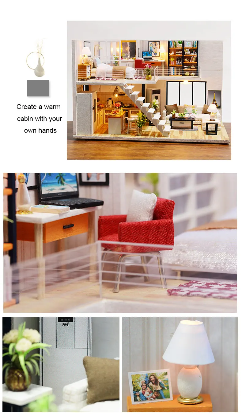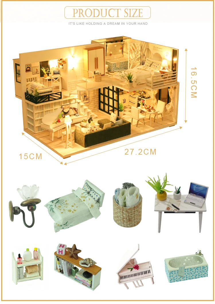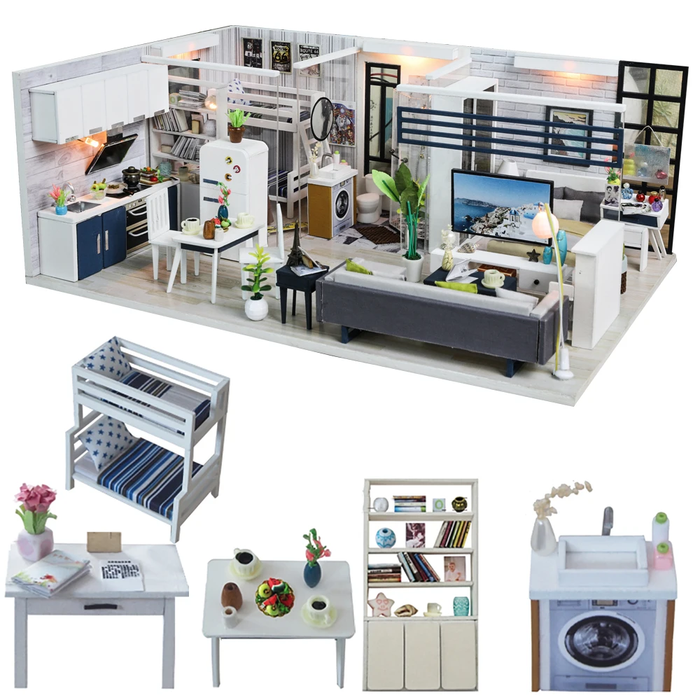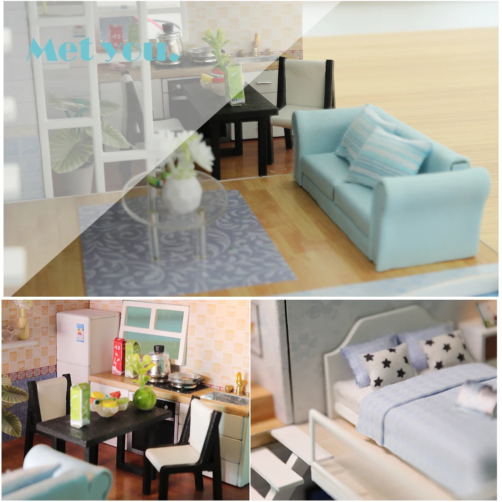 Кукольный дом "сделай сам" CUTEBEE, деревянные кукольные дома, миниатюрный кукольный домик, набор мебели со светодиодной подсветкой, игрушки для детей, подарок на Рождество, день рождения