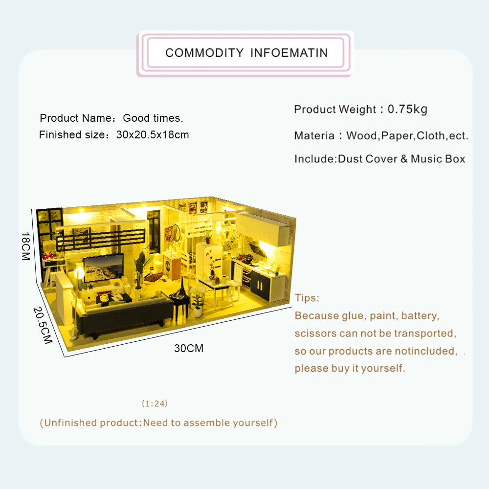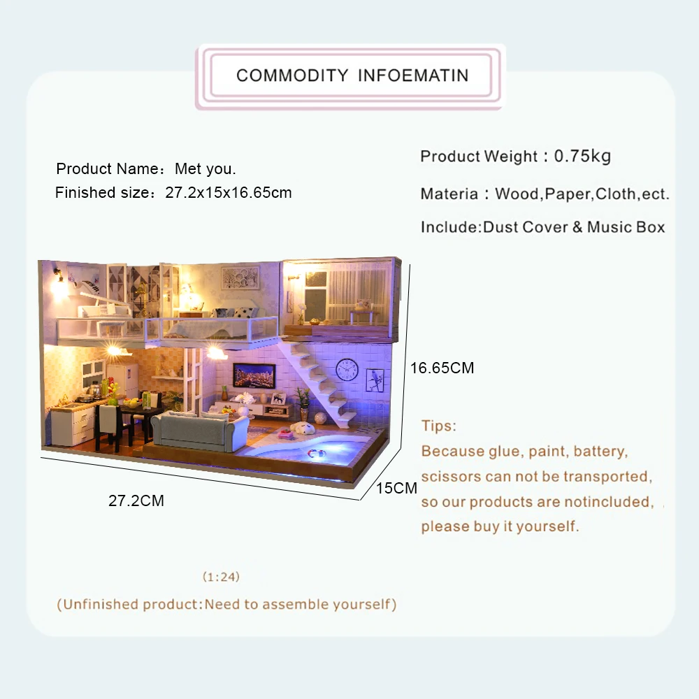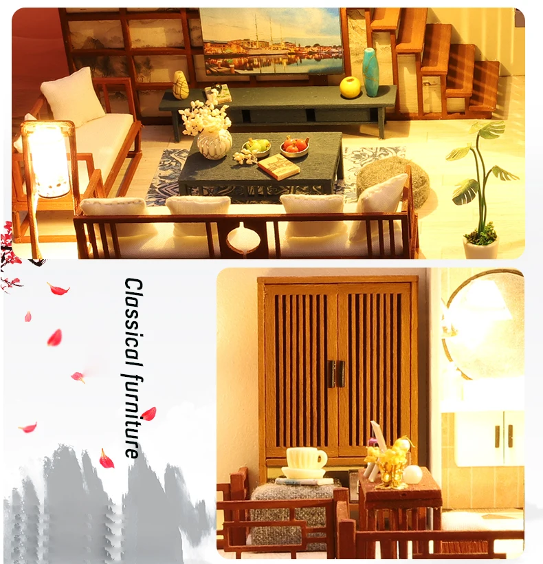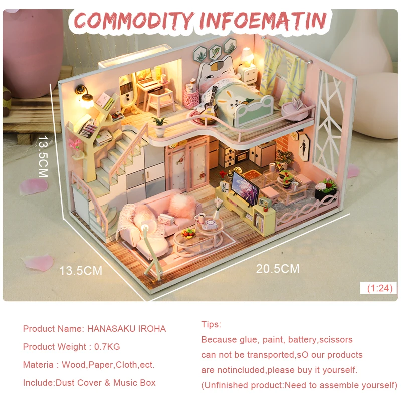 Кукольный дом "сделай сам" CUTEBEE, деревянные кукольные дома, миниатюрный кукольный домик, набор мебели со светодиодной подсветкой, игрушки для детей, подарок на Рождество, день рождения