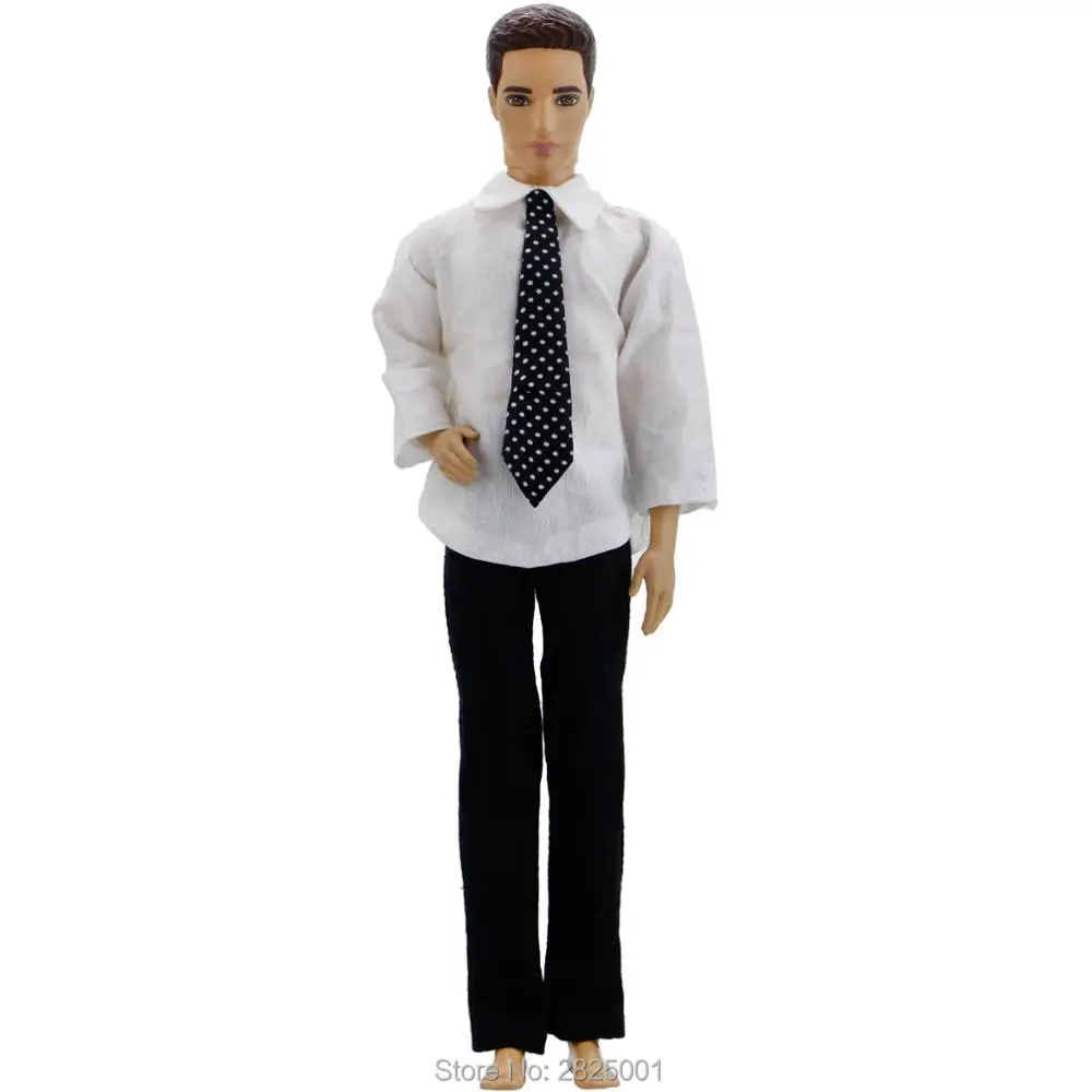Один комплект мужской одежды, официальный черный костюм, белая рубашка, галстук, брюки, Одежда для куклы Кена, аксессуары для домика для маленьких девочек