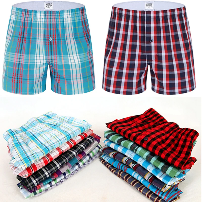 Классические клетчатые мужские шорты-боксеры, мужское нижнее белье, хлопковые трусы-боксеры, мужские тканые трусы-боксеры со стрелками