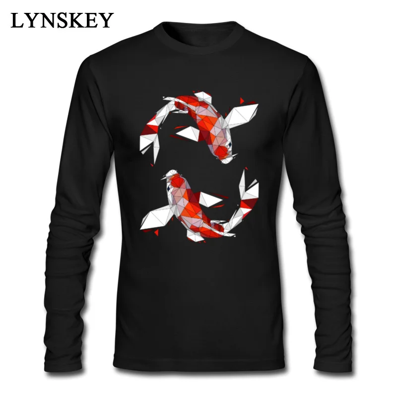 Мужская футболка с длинным рукавом Lucky Koi, черная футболка с принтом животных и художественным дизайном, зима 2018