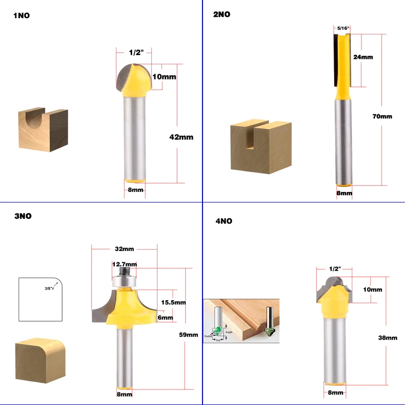 Концевая фреза по дереву с хвостовиком 8 мм, 1 шт., прямая фреза, триммер, очистка, утапливание, отделка, угловой круглый корпус, сверла, инструменты, фрезерование, резка CHWJW