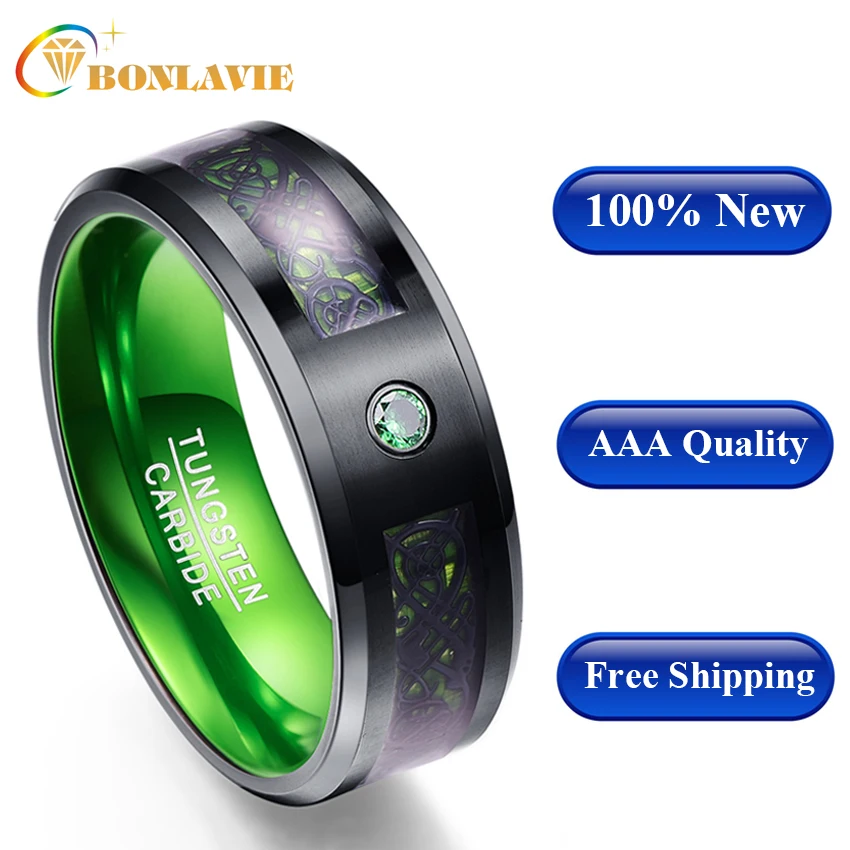 Мужские кольца из углеродного волокна с зеленым цирконием, 100% вольфрам-карбид, свадебные подарочные Колечки с черным драконом, качество AAA