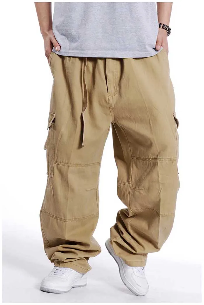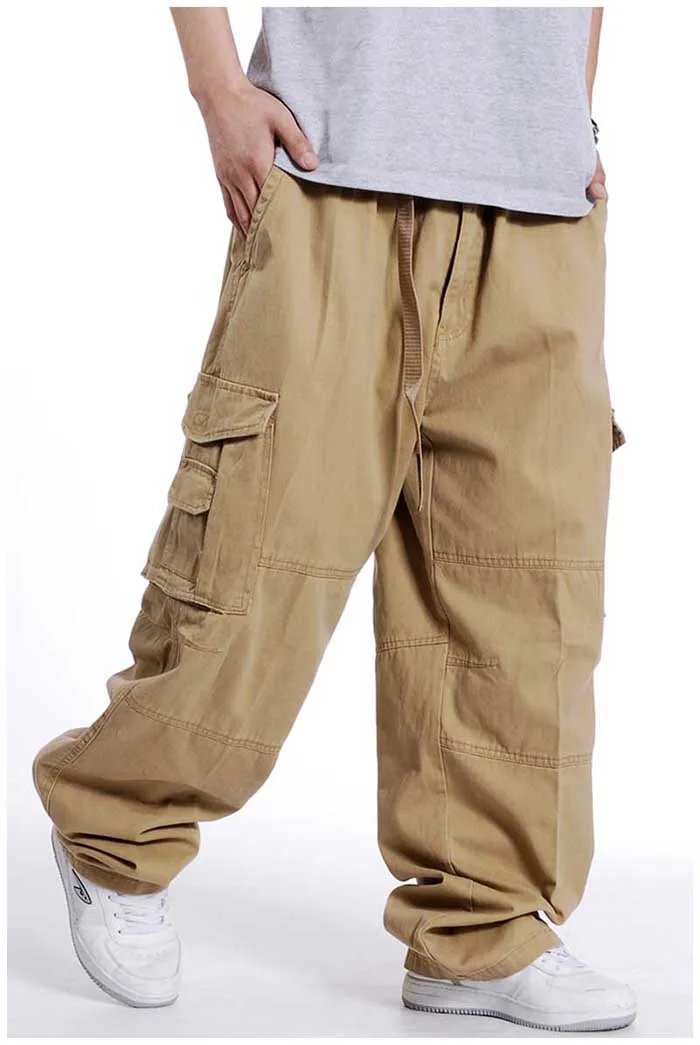 Брюки-карго мужские хлопковые, Свободные мешковатые штаны в стиле хип-хоп, армейские брюки с широкими штанинами, тактические повседневные Джоггеры в стиле милитари, уличная одежда, большие размеры