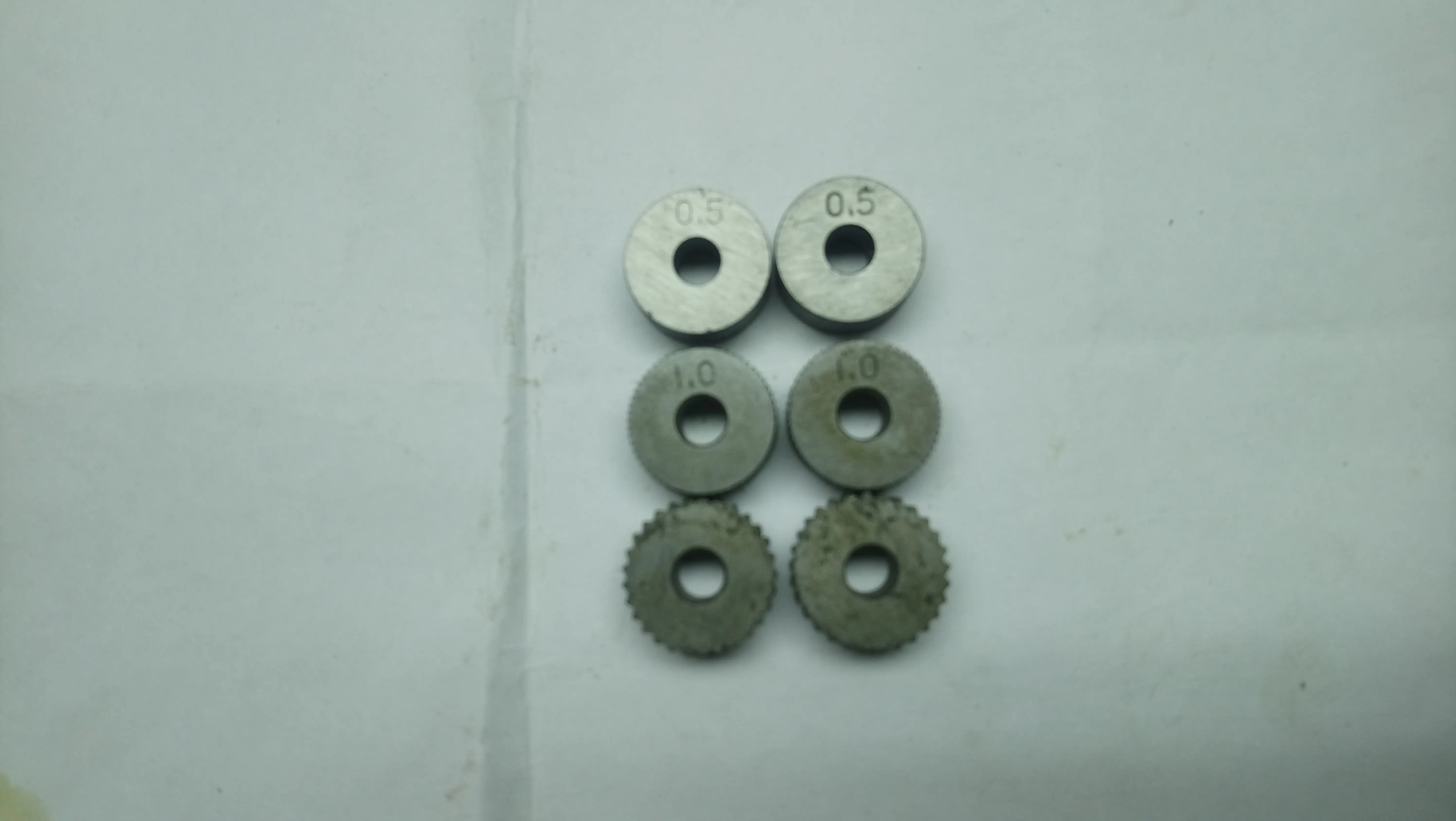Заказывал для приспособы на фото. С ней идут ролики с "косой" нарезкой. Немного не подошли- отверстие у стоковых роликов 6,4 мм, диаметр осей под них 6,3 мм. Диаметр отверстия у этих роликов 6,1 мм. 2 десятки нужно растачивать. По закалке ничего сказать не могу - опробовать не получилось. У роликов с шагом 0,5 мм и 1 мм боковые поверхности шлифованные. Выбит шаг ролика. Ролики с шагом 2 мм сделаны менее аккуратно, на боковых поверхностях небольшие каверны, номинала шага нет. Железки накатываются, китайцы обогащаются. Равновесие достигнуто.
