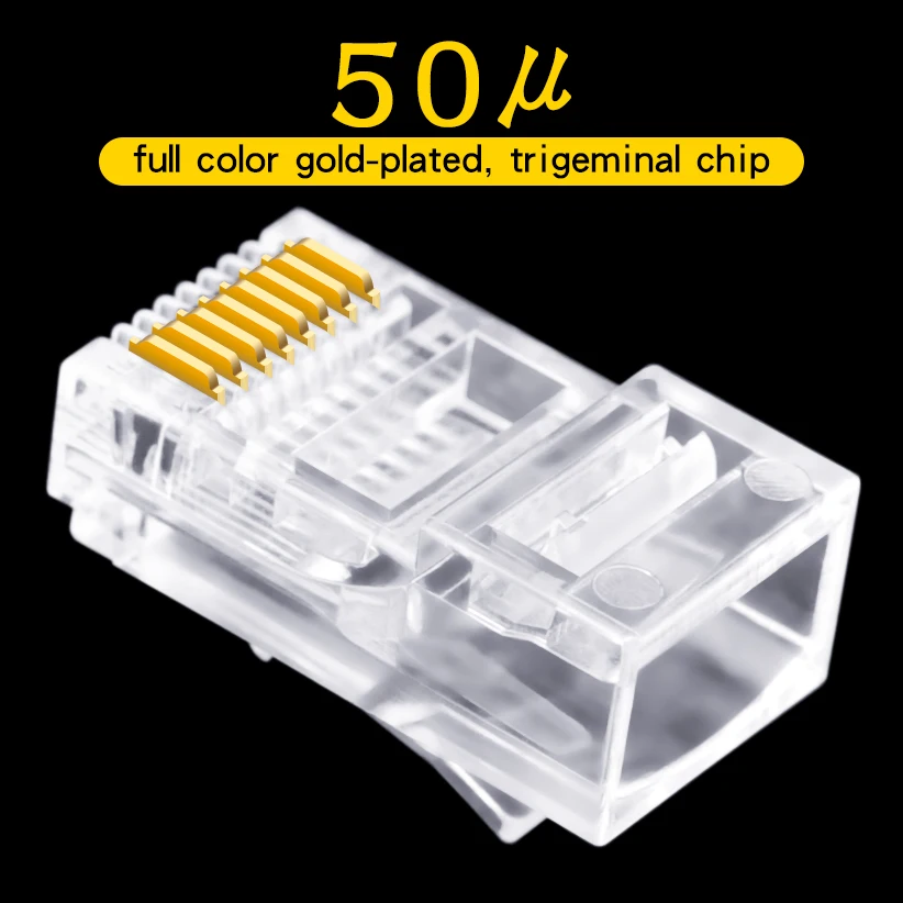 Перфорированные Разъемы Ethernet CNCOB Cat5e RJ45 8P8C, 50u, позолоченные модульные Сетевые штекеры, сетевой кабель, соединитель, 0 шт.