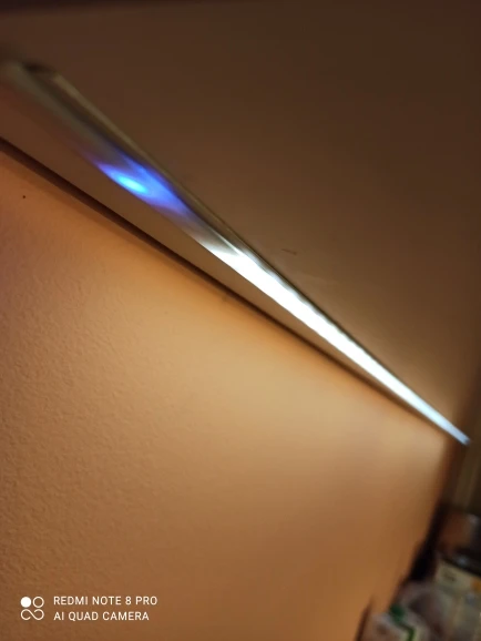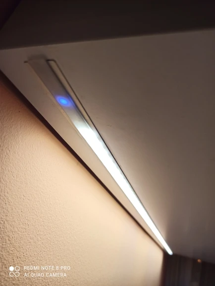 все работает. светит синим диодом. есть память по исходящему напряжению. при отключении общего питания самостоятельно не включает ленту. нет клейкой основе в комплекте, но цена очень приятная.