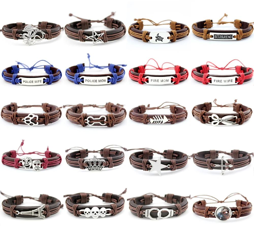 Кожаные браслеты унисекс, очаровательные ювелирные изделия для воле...