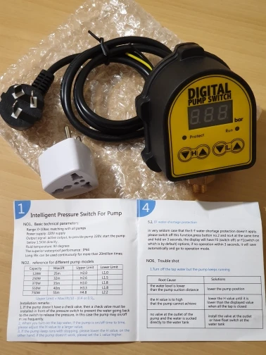 Доставка до Москвы за 4 дня. Проверил на сухую, через минуту выключается, работает не только как реле давления, но и реле сухого хода. Длина кабеля с вилкой 85 см, длина на насос 35 см. Настройки элементарные, ни каких гаек крутить не надо. В общем одно удовольствие, настроил один раз и забыл.