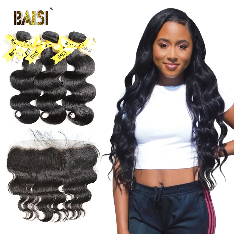 BAISI волосы 100% необработанные человеческие волосы перуанские Виргинские волнистые волосы 3 пучка с фронтальной