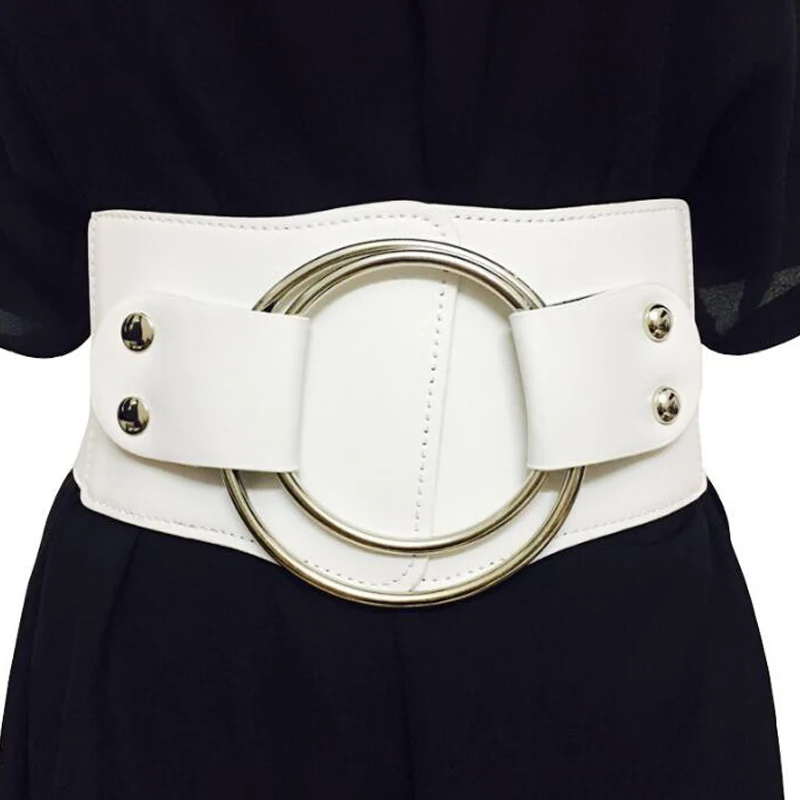 Винтажные эластичные ремни с широкой талией для женщин, женский эластичный ремень с большим металлическим кольцом