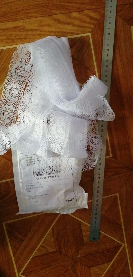 Посылка в Ростовскую обл. на почту пришла на 22 день. Кружево соответствует описанию, равномерно окрашено цвет насыщенный. Должно быть 9м14см если перевести в ярды, а положили 9м96см,отдельное спасибо прадавцу. Буду ещё заказывать.