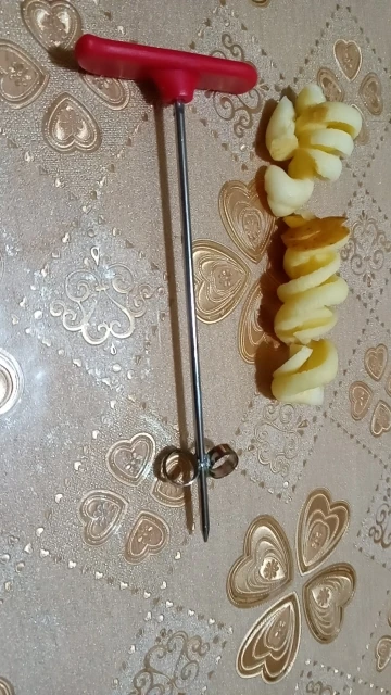 сказати що ця "викрутка" класна - нічого не сказати! дійшла швидко, відправили також швидко, тож дякую продавцю! ті два кільця дуже гострі, миттю прорізають картоплю, дірочки виходять рівномірні і красиві хвостики рекомендую викрутку саме такого типу!, а не ті з одним кільцем!