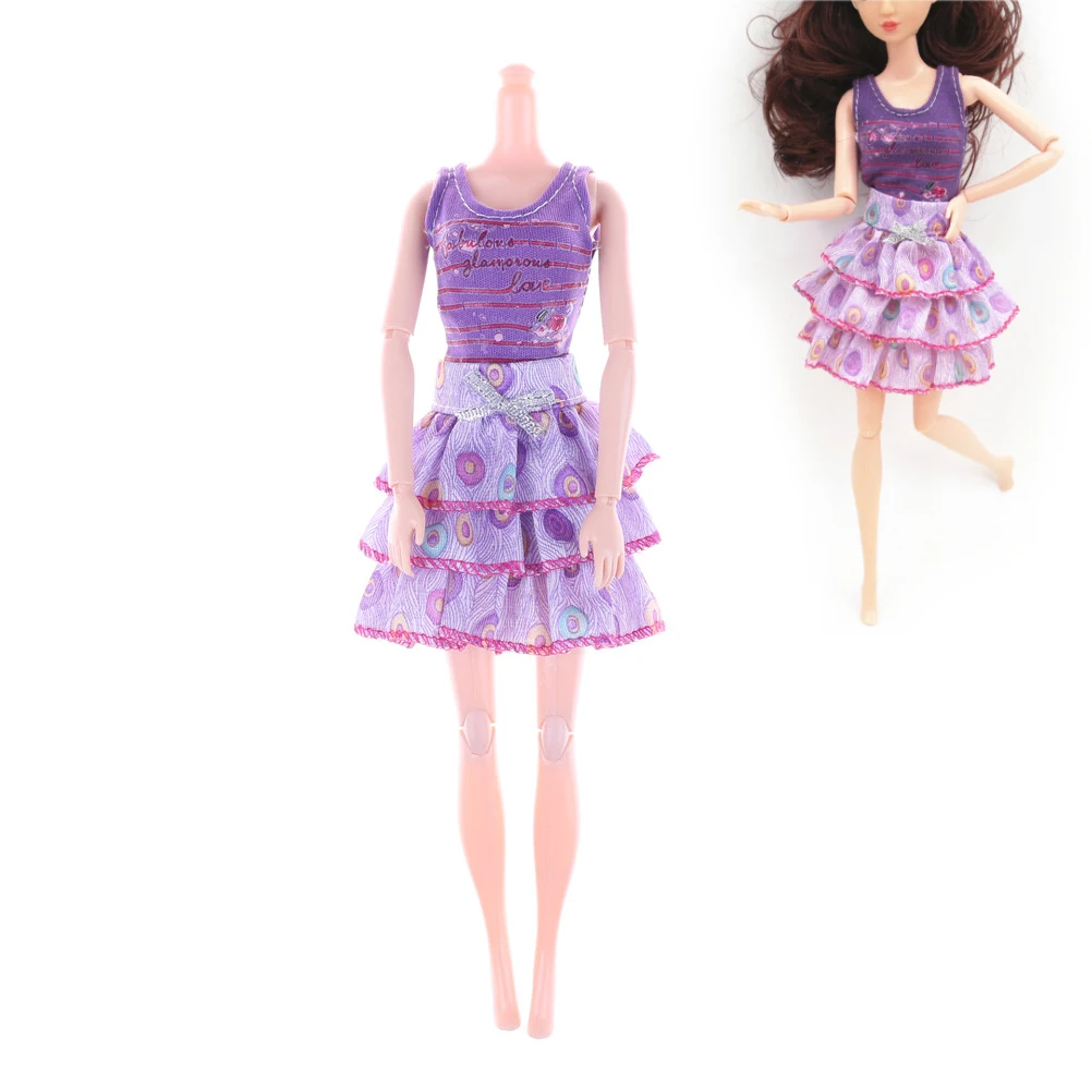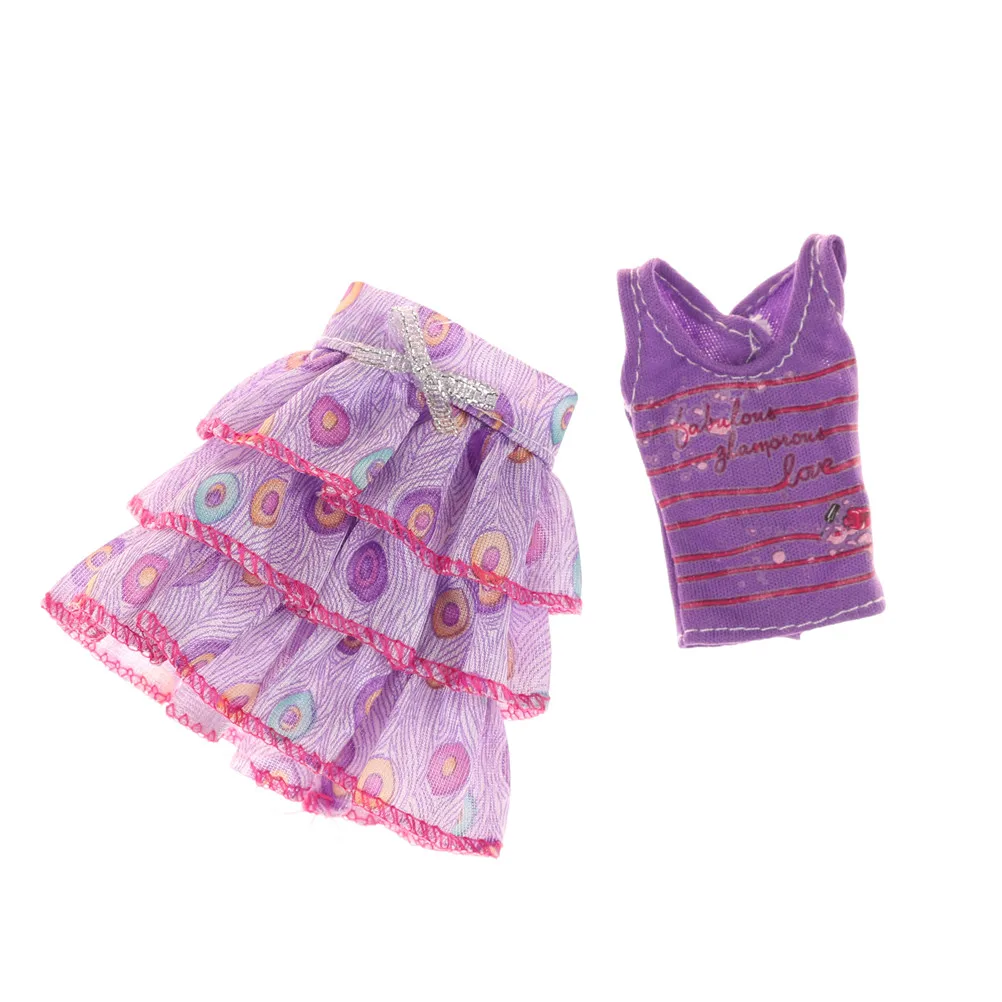 2 шт.компл. модное платье с короткими рукавами и рисунком для футболки и юбки для кукол