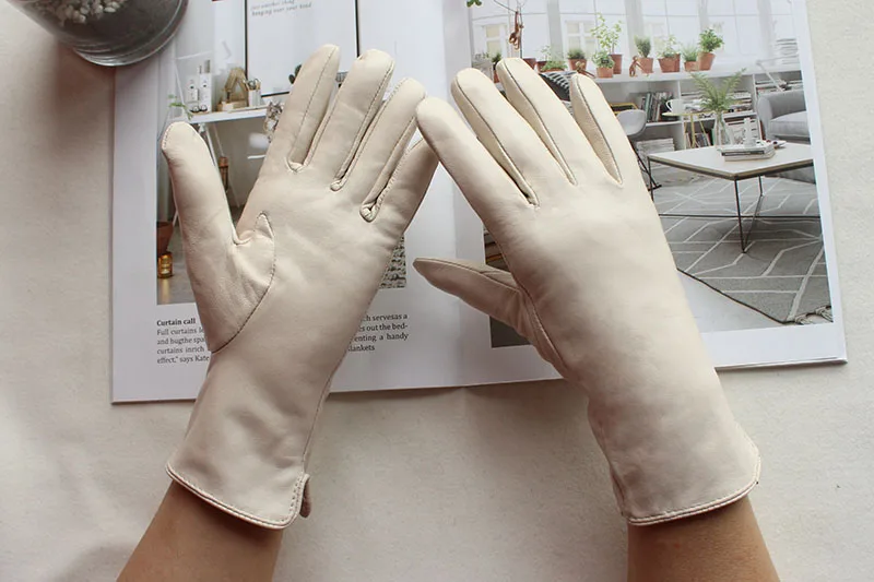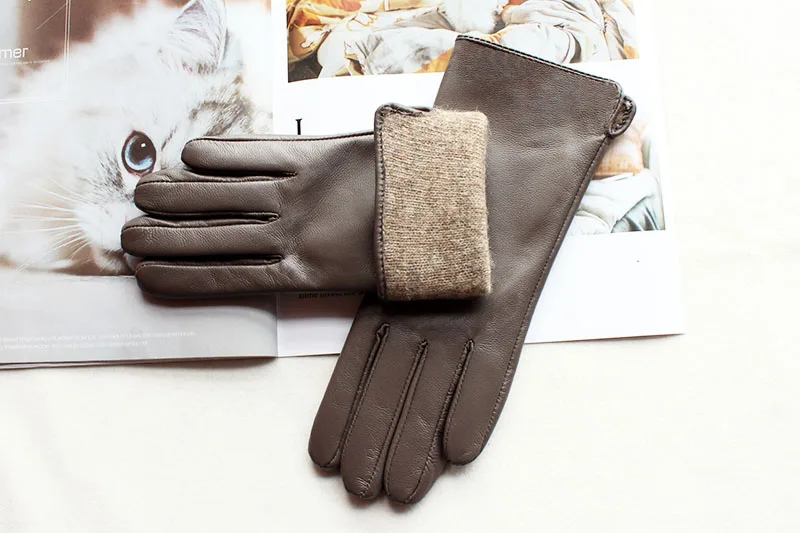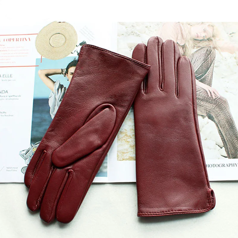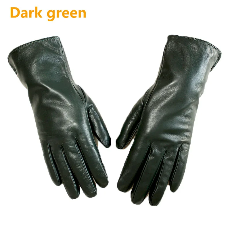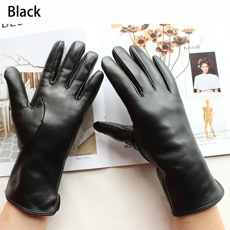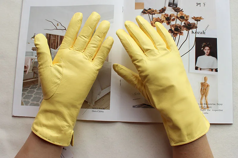 Женские перчатки из овечьей кожи, Модные цветные кожаные простые Стильные теплые перчатки с шерстяной подкладкой на весну и осень