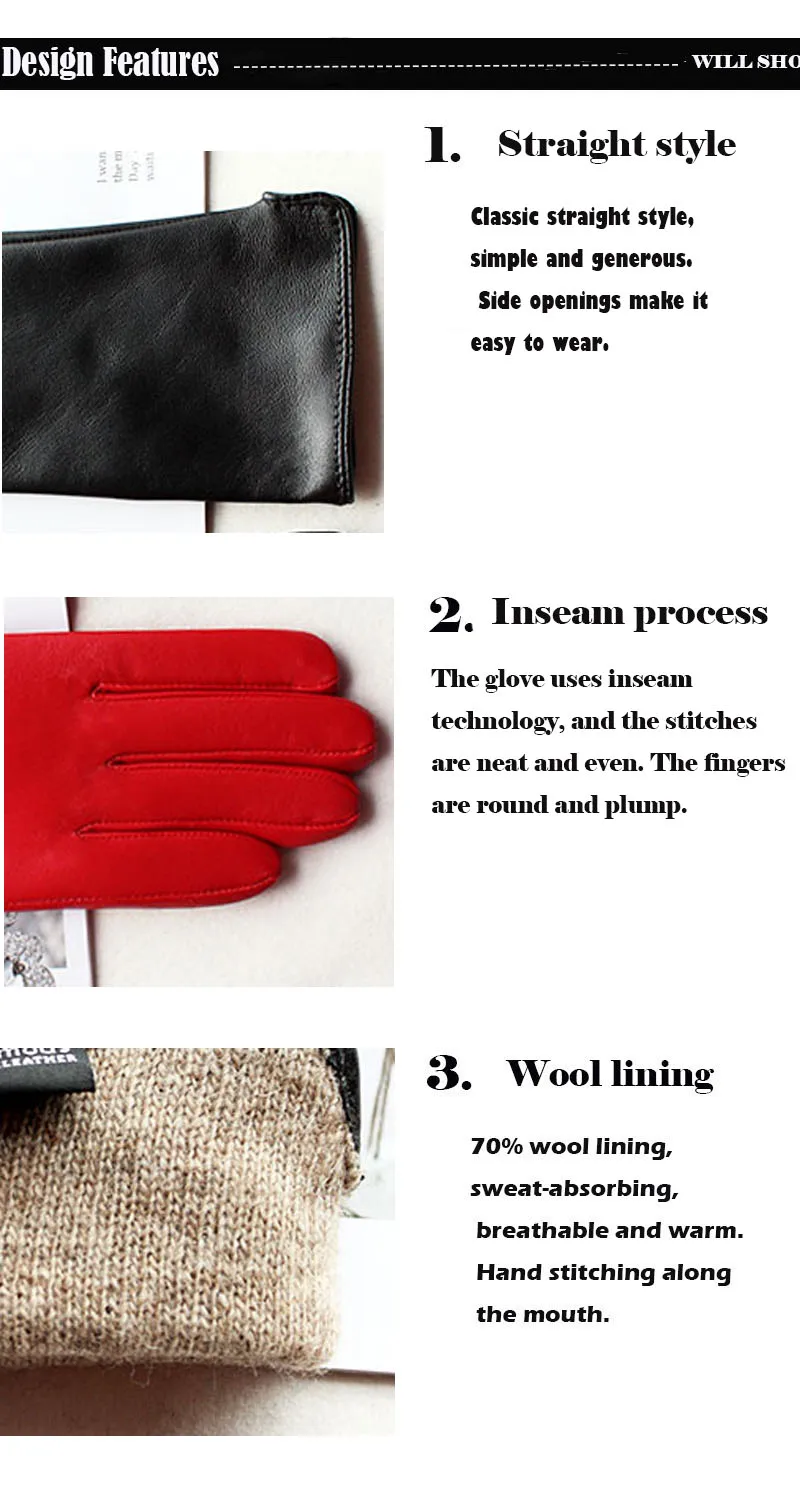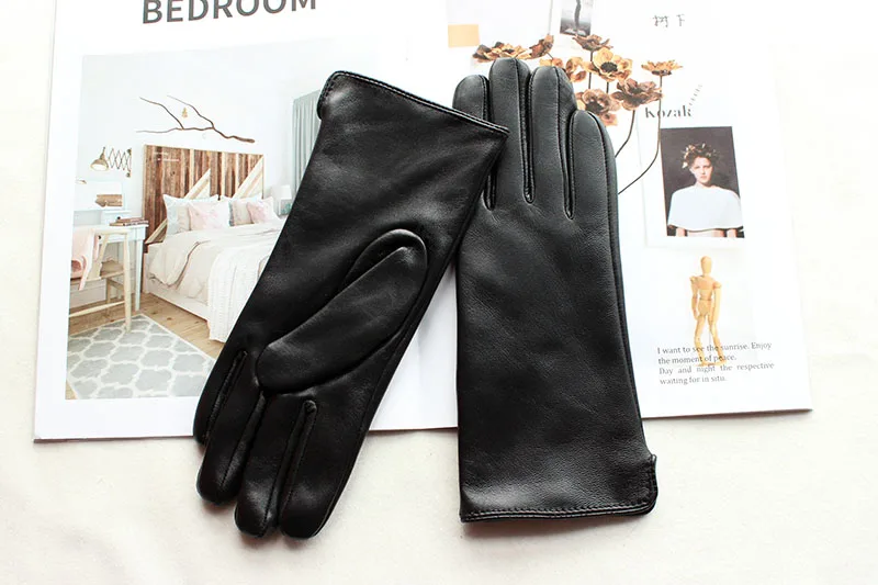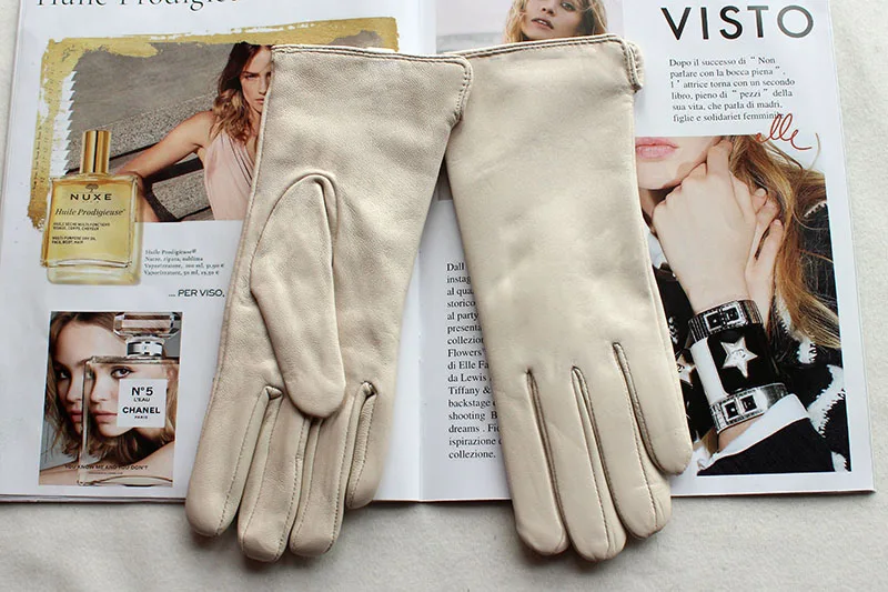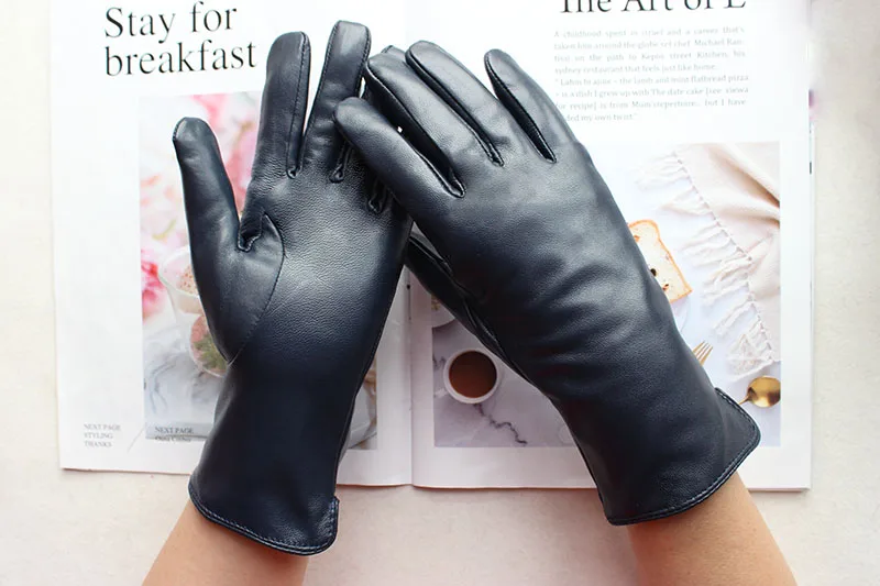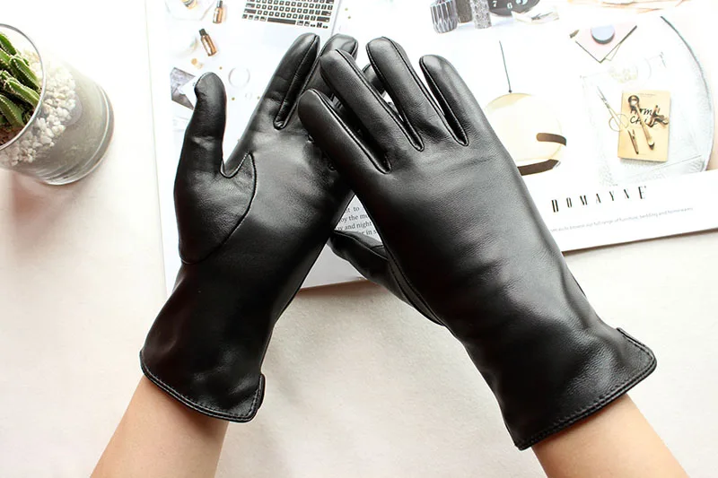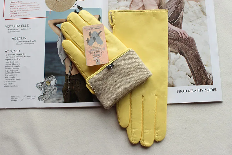 Женские перчатки из овечьей кожи, Модные цветные кожаные простые Стильные теплые перчатки с шерстяной подкладкой на весну и осень
