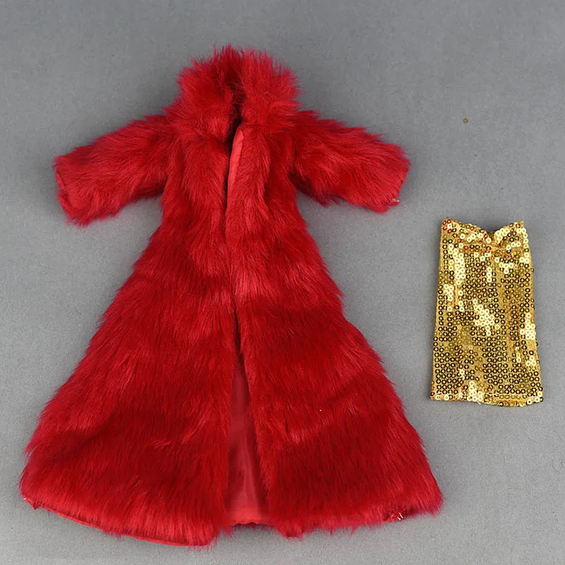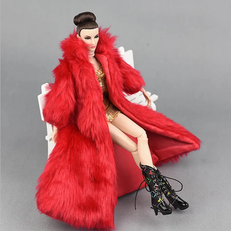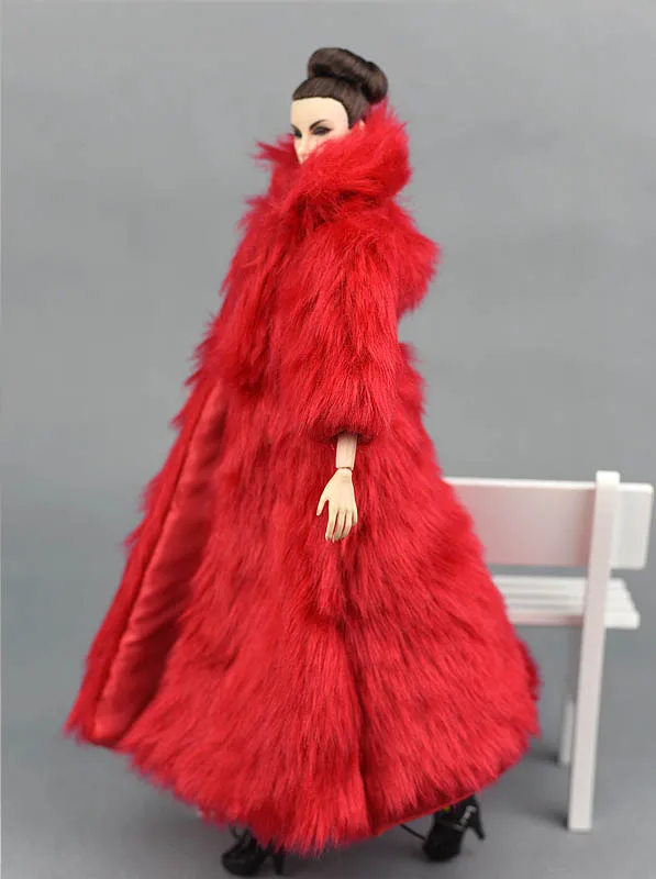 Комплект аксессуаров для кукол, детская игрушка, зимнее очень длинное меховое пальто, модная одежда для кукольного домика Барби, парка, платье для кукол 16 BJD