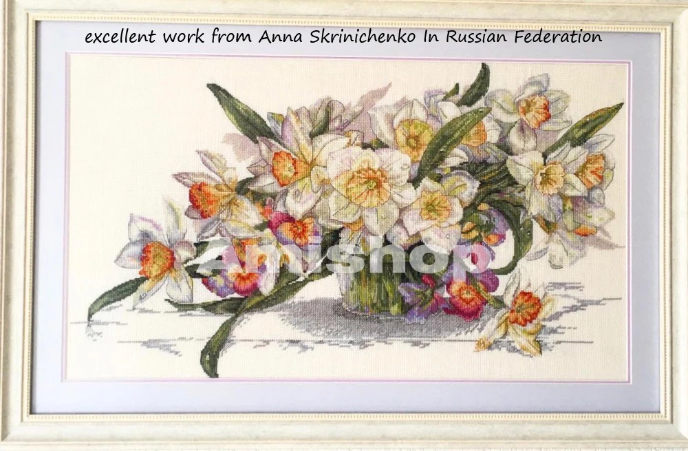 Высокое качество Горячая продажаСчетныйНабор для вышивки крестиком, букет из Нарцисса, ваза, цветыБесплатная доставка