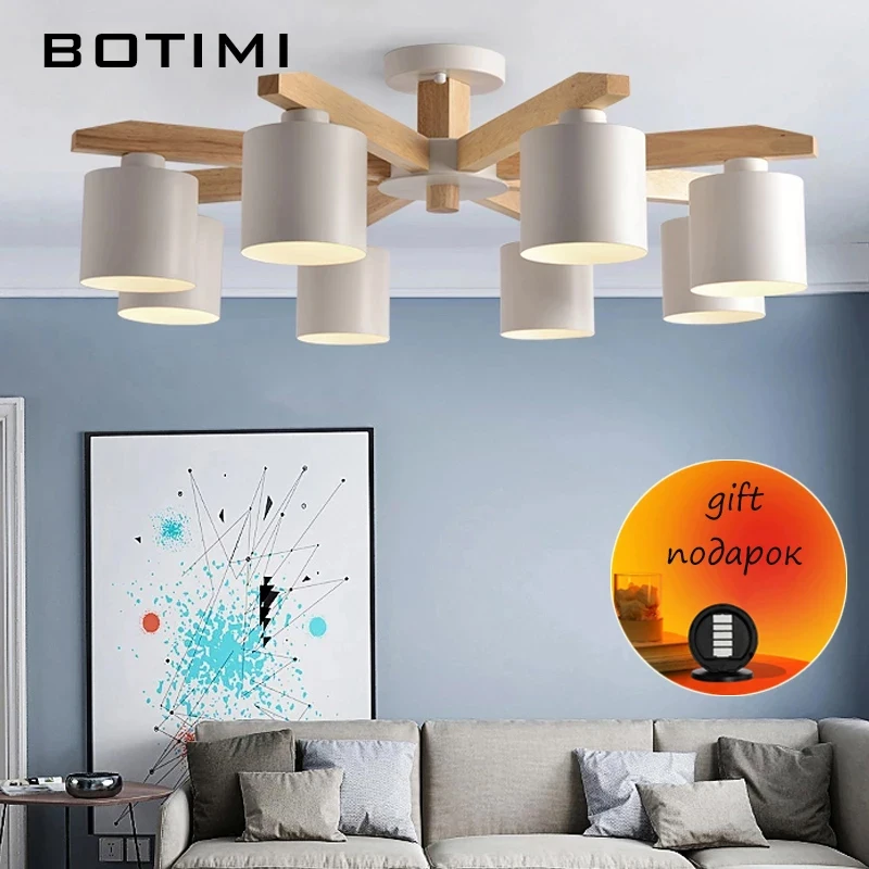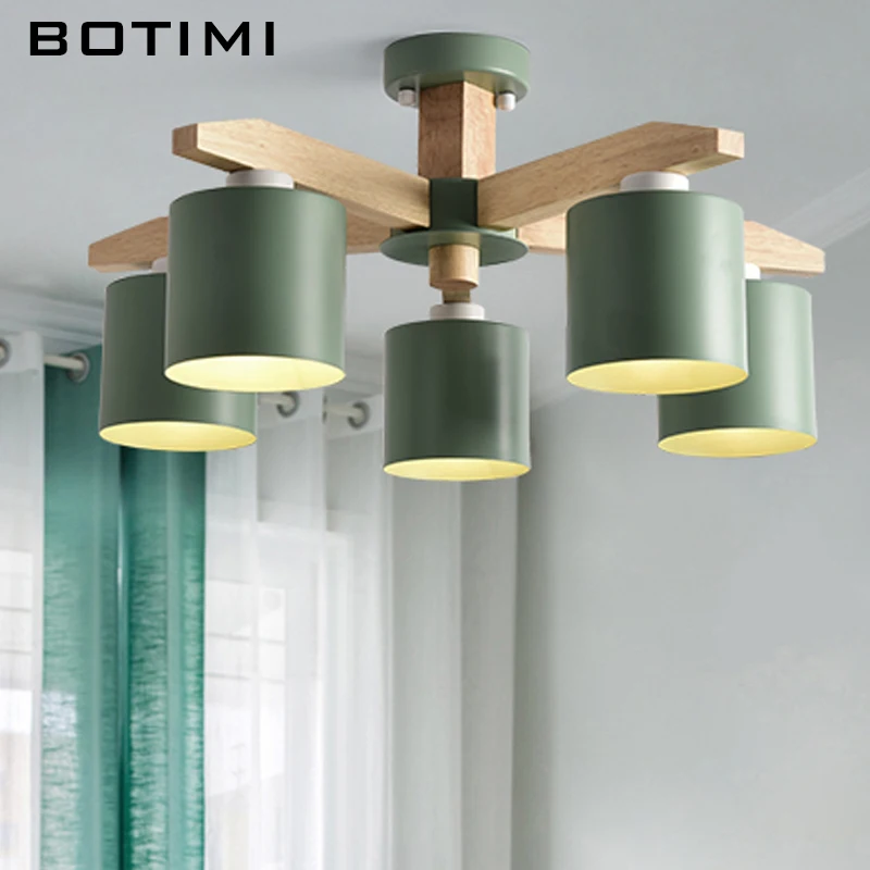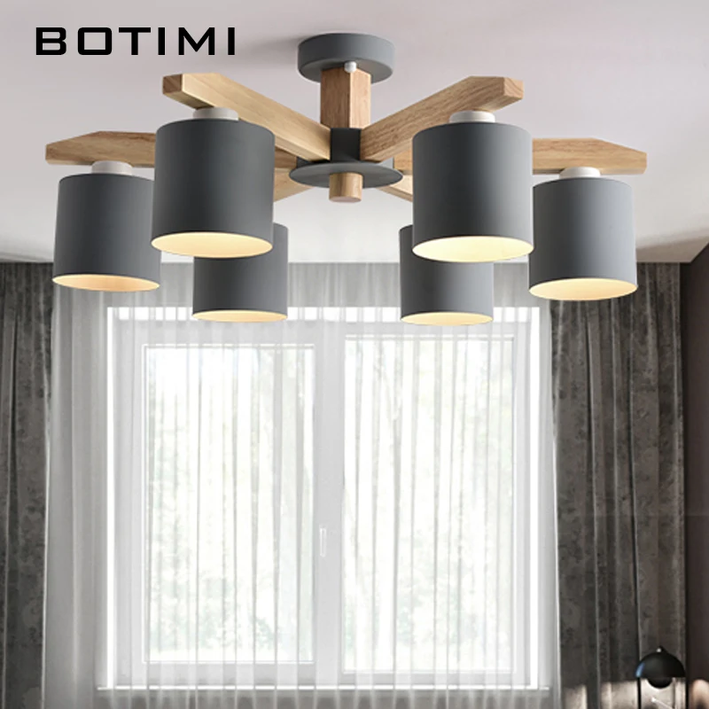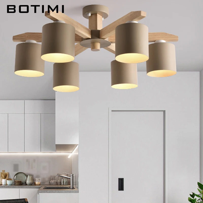 Деревянная люстра BOTIMI с цилиндрическими металлическими абажурами, лампа для гостиной, обеденного стола, кухни