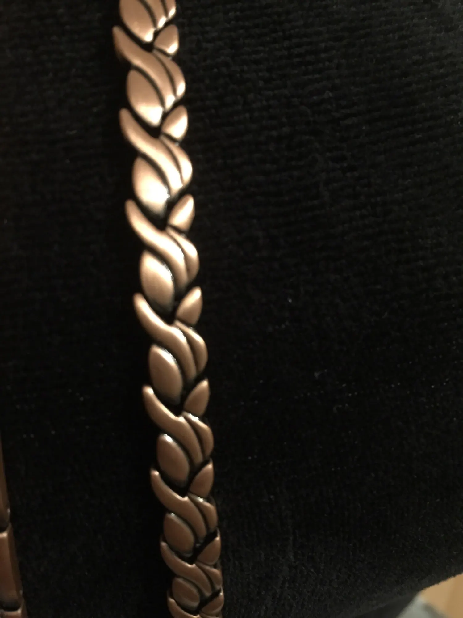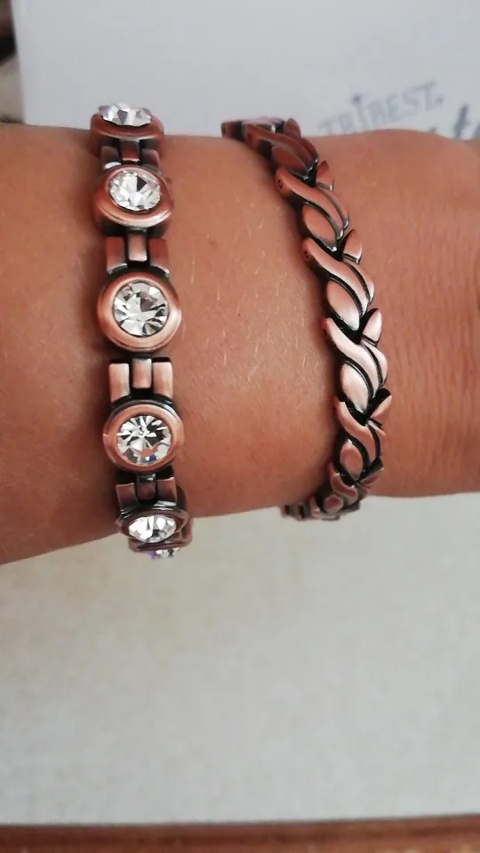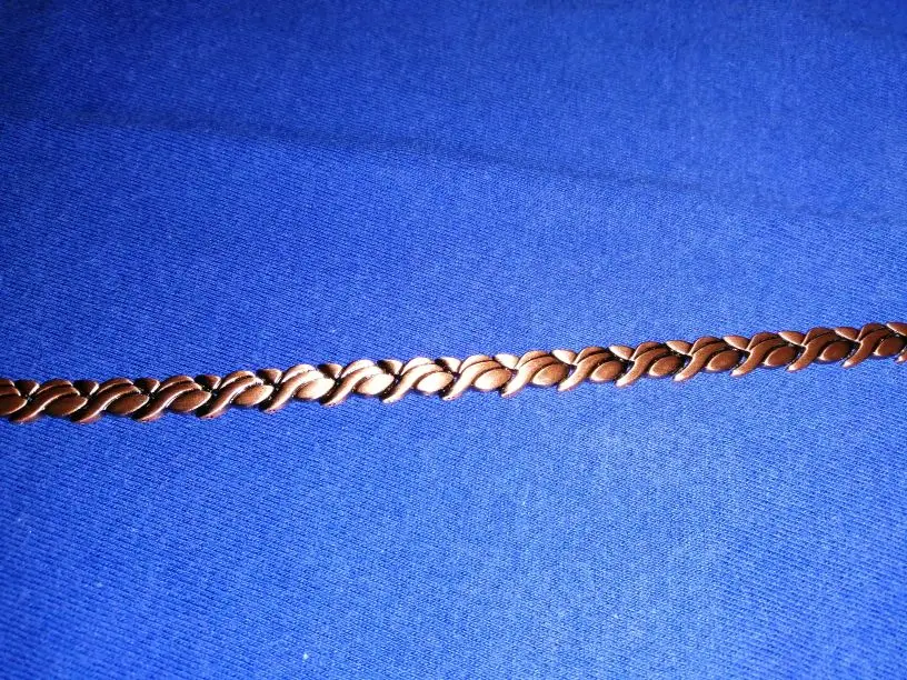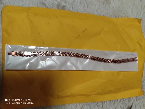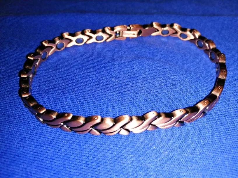 Красивый браслет, из чистой меди. Чем-то покрыт, так как медью не пахнет. По всей длине расположены маленькие магниты. Застежка крепкая. Браслет большой, мне он сильно велик. Думаю, можно убрать лишние звенья. Брала за 765 р. Доставка месяц.