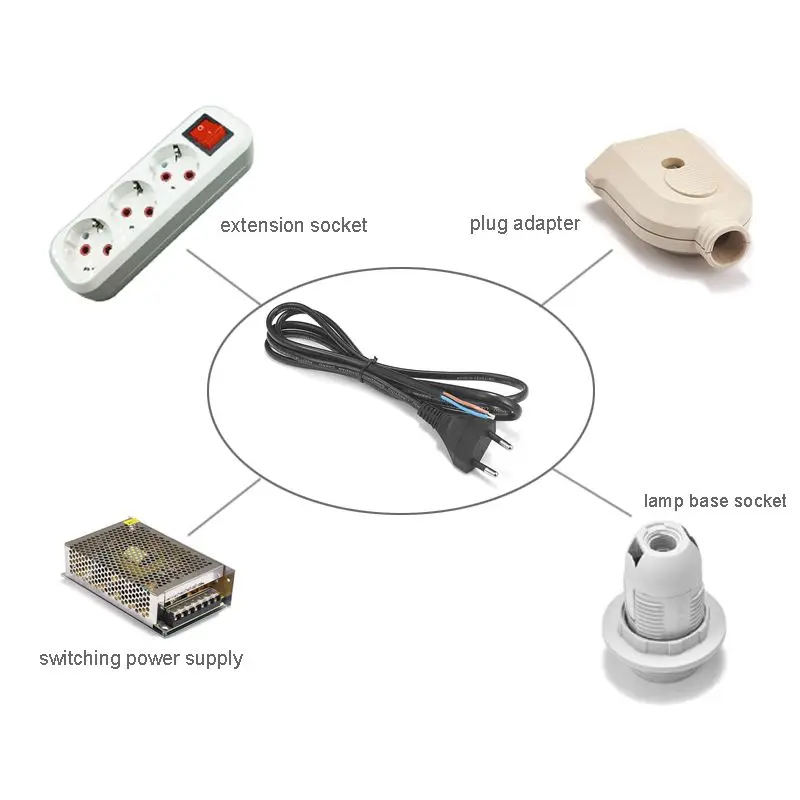 100% новый кабель питания ЕСПроволочный Калибр: 0,75 mm2 x 2Напряжение/ток: 250 В 2.5AМатериал проводника: медьИзоляционный материал: ПВХДлина кабеля (приблизительно): 0,5 м/1 м/1,5 м/2 м/3 м опционально